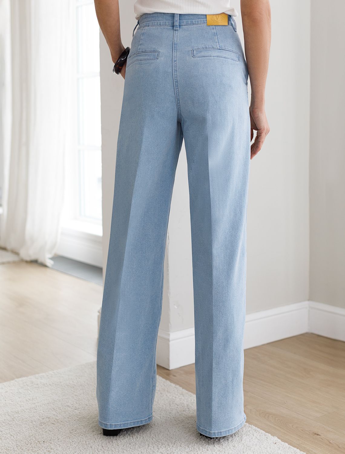 Джинсы трубы голубого цвета со стрелками из эластичного денима — отличный выбор для тех, кто ценит стиль и комфорт в повседневной жизни. Благодаря стрелкам джинсы визуально вытягивают ноги, делая образ более изящным и аккуратным. Классический крой подходит на разные типы фигур и размеры, в том числе большие. За счет эластана модель отлично садится по фигуре, подчеркивая ее достоинства и создавая стройный силуэт, материал способствуют идеальной посадке по талии и бедрам, которая сохраняется даже после длительного ношения. Вы сможете выбрать джинсы,подходящие под свой рост: низкий или высокий. Джинсы подходят для разных случаев благодаря универсальному крою и лаконичному дизайну. Они легко комбинируются с разной верхней одеждой, позволяя создавать как повседневные, так и более официальные образы. Выбирая эти джинсы, вы получаете не просто одежду, а уверенность в своем стиле каждый день.