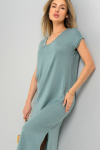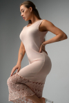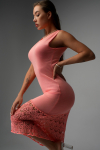 Однотонное женское платье пудрового цвета станет идеальным решением для создания уютного образа дома, на даче или в поездке.