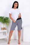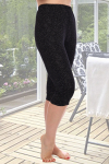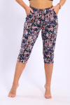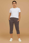 Укороченные брюки с боковыми карманами. Широкий пояс застегивается на пуговицу.
