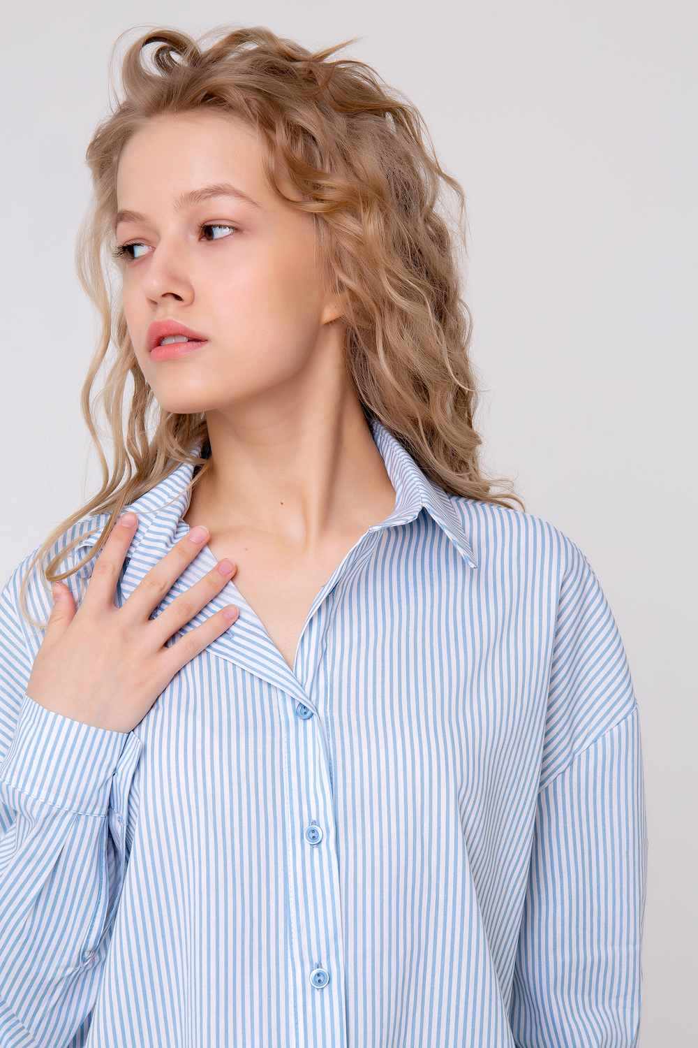 Новая премиум коллекция от Рапоза отличается весенними образами и пастельными тонами! Особенный лоск! Рубашка свободного кроя из натурального хлопка сделает ваш образ воздушным. Рубашечный ворот дает возможность как удлинять шею, просто расстегнув пуговицы, так и делать овал лица четче, просто застегнув ворот на все пуговицы. Классический принт полоска в сочетании с любым элементом гардероба придаст шика и элегантности, а пастельные оттенки подчеркнут свежесть кожи. Такая модель - отличная база для создания брендовых луков в стиле casual. Приобретите легкость, комфорт и свободу на каждый день, ведь эта вещь полюбится Вами с первого прикосновения. Все товары бренда Raposa производятся в России (Иваново), используются ткани премиального качества. Ограниченная коллекция только для этой весны! Цвет: белый/голубой; Материал: перкаль;перкаль; Состав: 100% хлопок.