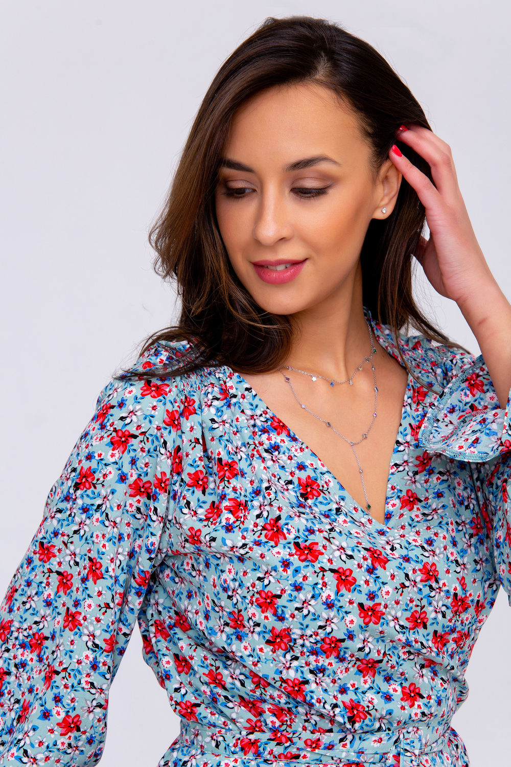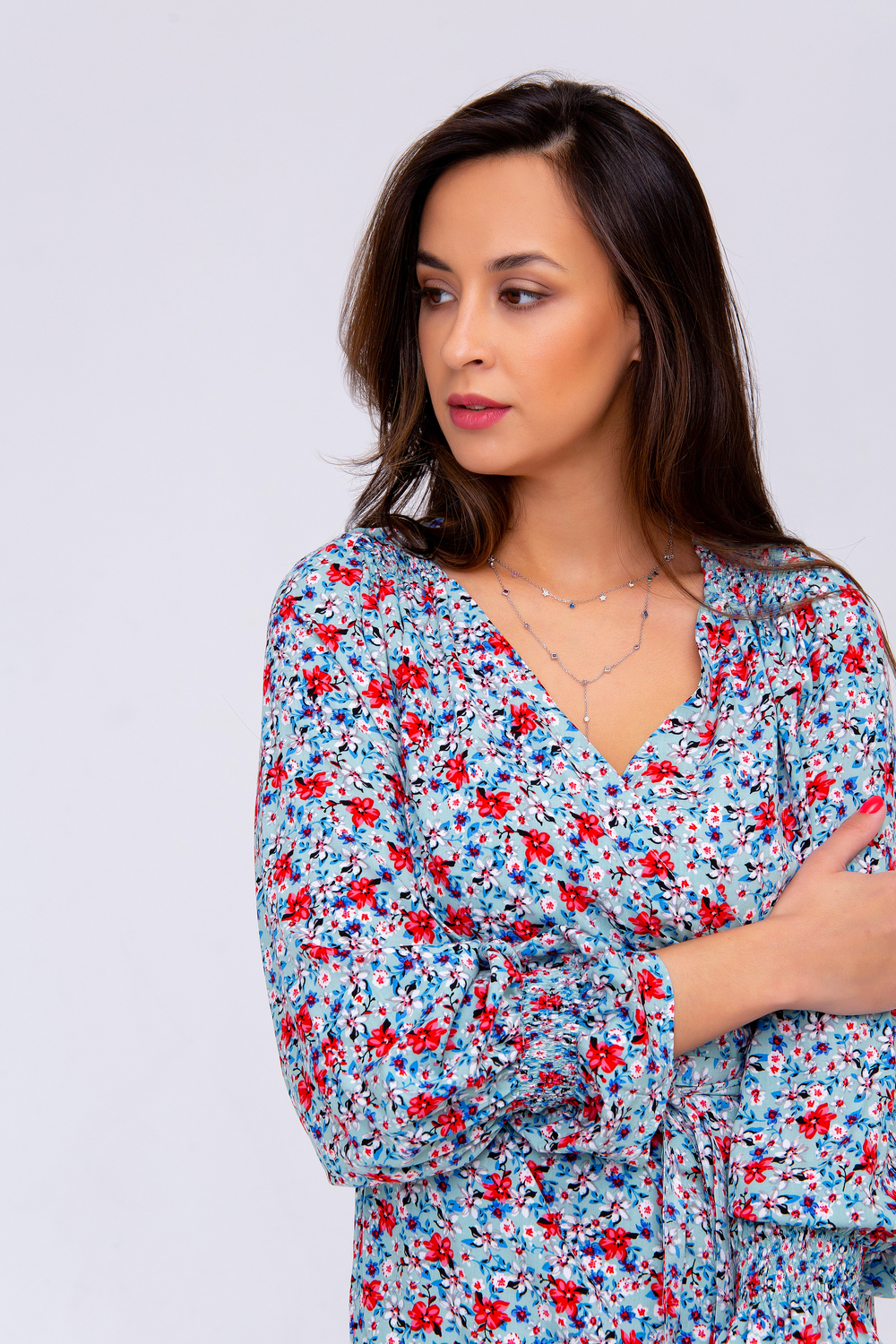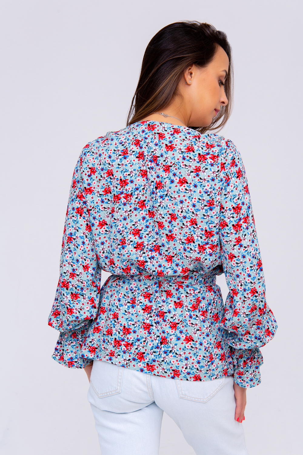 Летняя премиум коллекция от Рапоза! Только трендовые тенденции этого лета: свободные, летящие модели, сочные цвета, натуральные ткани, стильный крой! Цветочный принт подчеркнет вашу женственность, а оригинальный вырез с запахом придаст соблазнительности! Кокетливо выполненные рукава добавят легкости, ведь именно этого больше всего хочется летом. Изысканная блузка в романтическом стиле легко сочетается с прямой юбкой или брюками-дудочками. Цвет: голубой; Материал: вискоза;штапель;штапель;вискоза; Состав: 100 % вискоза.