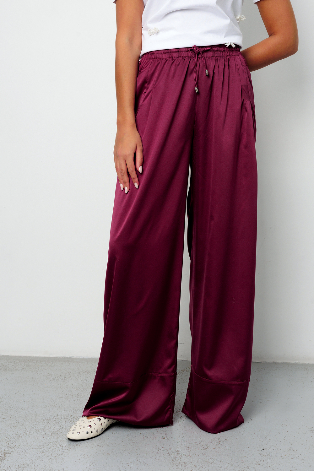 Модель: Брюки палаццо на резинке атласные 398BRD