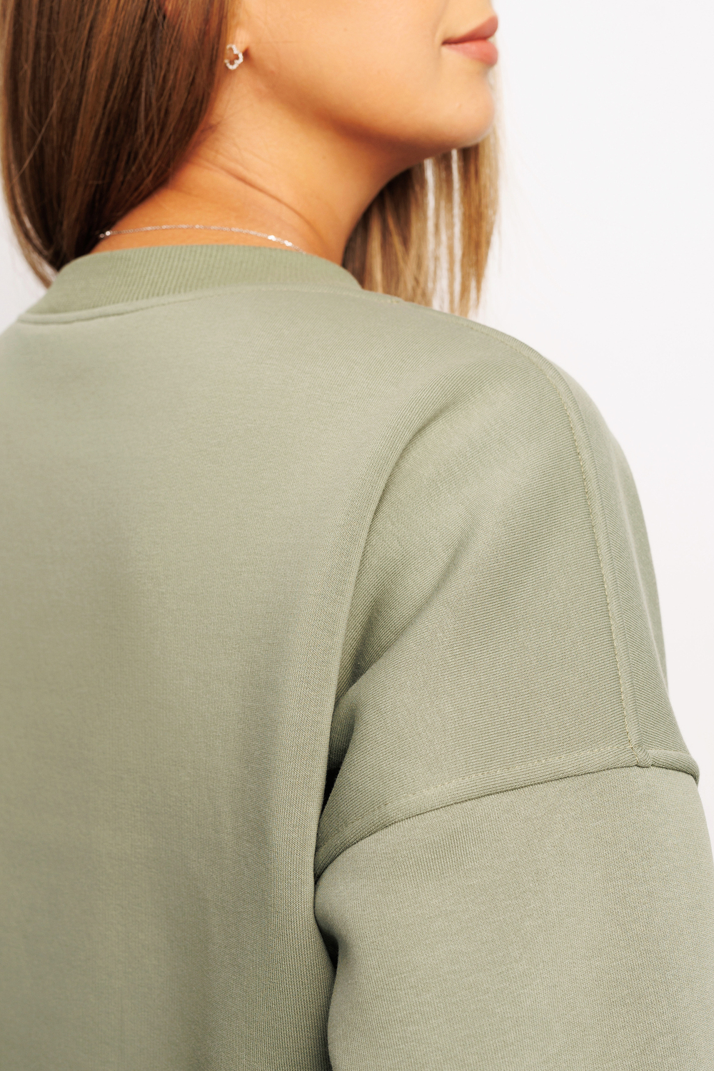 Бренд Raposa предлагаем Вашему вниманию однотонный свитшот женский в стиле кэжуал, который станет незаменимой удобной и комфортной вещью в гардеробе современной модницы. Качественный плотный хлопковый футер 3 нитка ткань с начесом подарит Вам уют, мягкость и тепло в холодные осенние и зимние дни. Горловина и манжеты толстовки с длинными рукавами и спущенным плечом выполнены из ткани кашкорсе, держит форму и не растягивается. Свободный крой будет удобен как кофта для беременных, а прекрасные дамы плюс сайз по достоинству оценят большие размеры, имеющиеся в наличии. Удлиненный силуэт сзади визуально делает фигуру более утонченной и стройной. Кофта хаки или оливкового оттенка в стиле спортивный шик прекрасно впишется в школьный дресс-код, и девочки подростки будут выглядеть стильно и уместно на учебе. Худи оверсайз в сочетании с другими предметами гардероба позволяет создавать интересные повседневные луки или для занятия спортом, а с юбкой или брюками того же оттенка составит костюм y2k. Базовый, утепленный и функциональный свитер женский спорт шик обеспечивает удобство движений. Идеально подойдет для фотосессии family look, для прогулок или отдыха на природе. Предварительно постирайте трикотажное изделие, чтобы удалить лишний начес с внутренней стороны. Не стоит беспокоиться, если внутри начнут образовываться небольшие катышки это не является дефектом. При соблюдении рекомендаций по уходу он будет выглядеть как новый долгое время, не скатается и не сядет. Цвет: хаки; Материал: футер 3-х нитка с начесом; Состав: 65% хлопок+35% п/э.