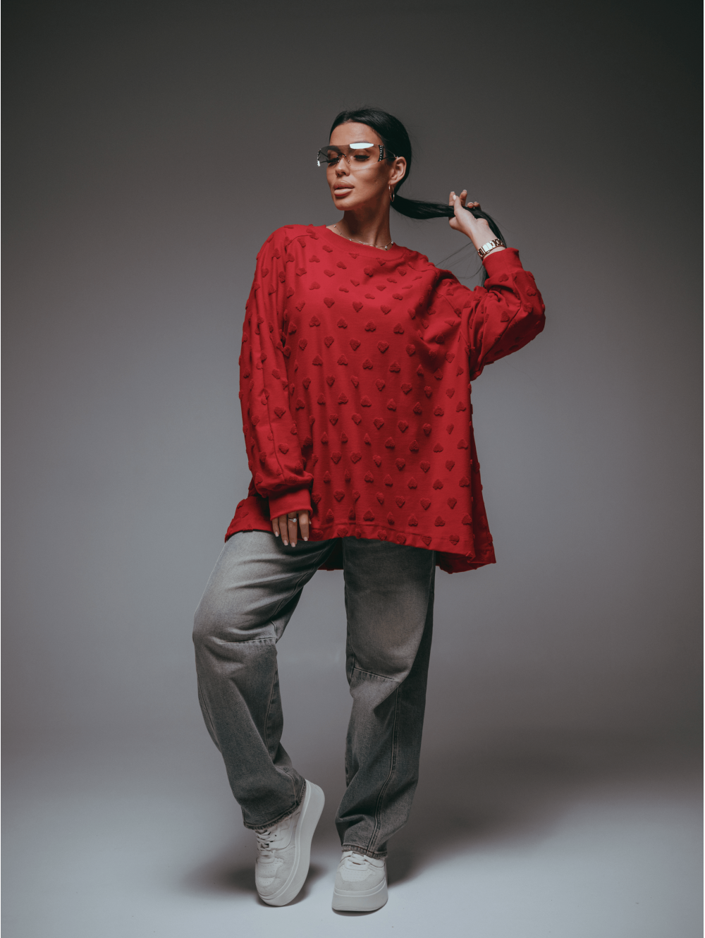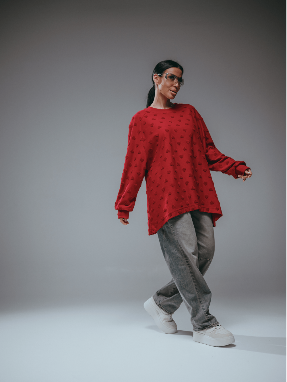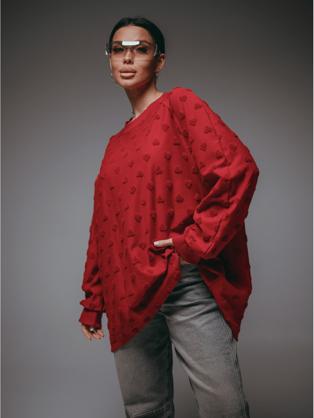 Женский свитшот оверсайз из махры жаккард. Уютный реглан с кашкорсе.
