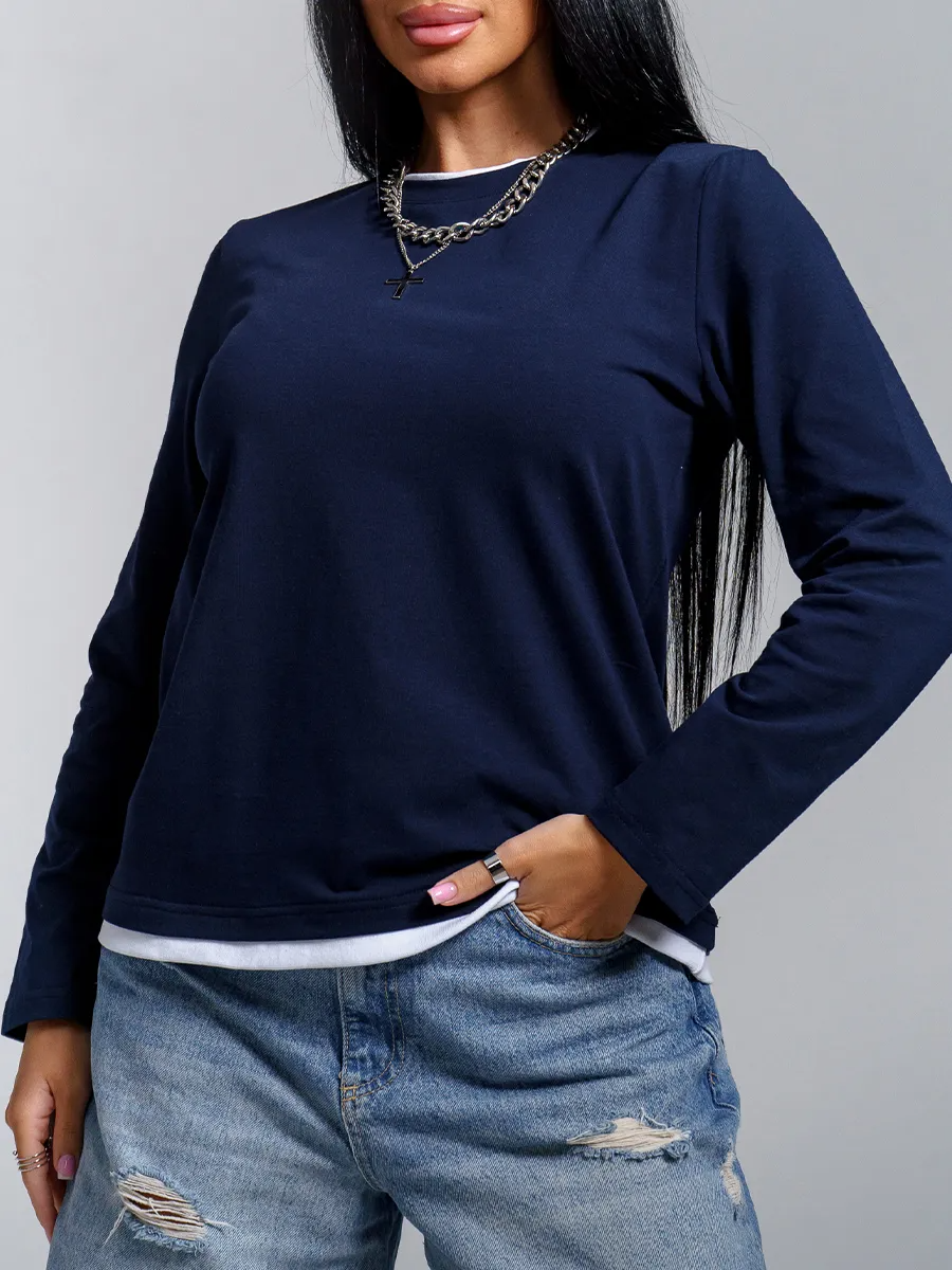 Женский лонгслив из кулирки с эффектом двухслойности