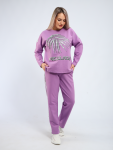 Костюм женский флисовый состоит из толстовки и брюк. Толстовка с кокеткой, на молнии, с воротником-стойкой, рукав спущенный внизу на резинке. Брюки с карманами, внизу на резинке. Костюм мягкий, теплый, удобный, идеально подойдет для прогулок и отдыха в прохладное время года. Молния может отличаться по цвету.