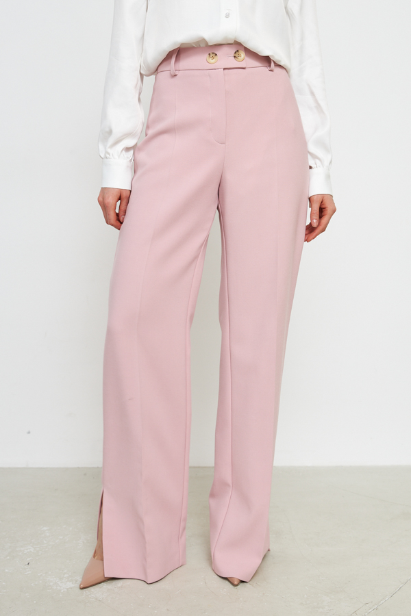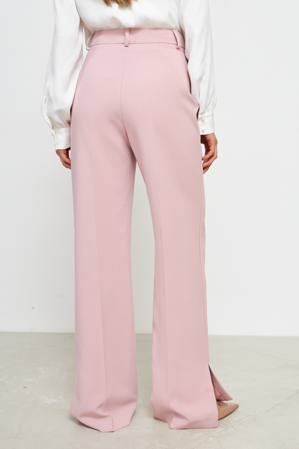 Брюки прямого силуэта с разрезами в боковых швах из костюмной ткани. Притачной пояс со шлёвками. Застёжка на молнию-гульфик и пуговицу. Секрет такой модели кроется в безупречно точной посадке по талии и бедрам – ничего лишнего, только конструктивные детали, которые придают четкость линиям силуэта.