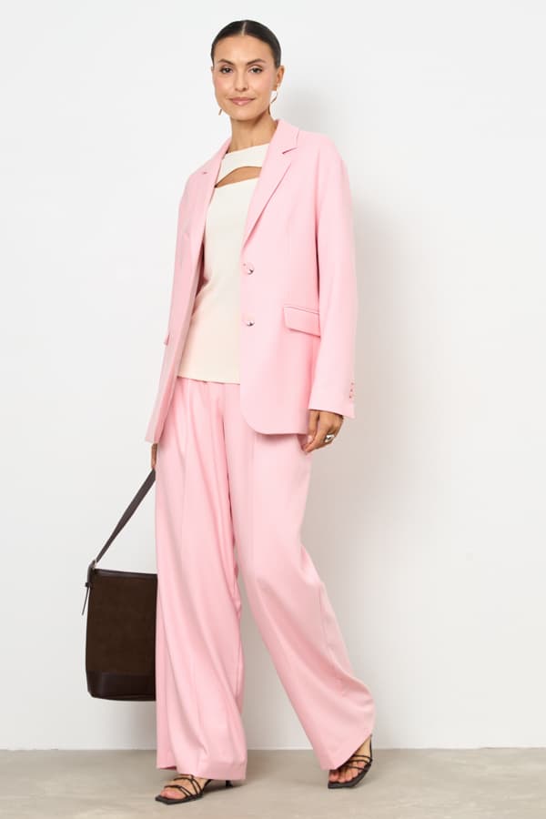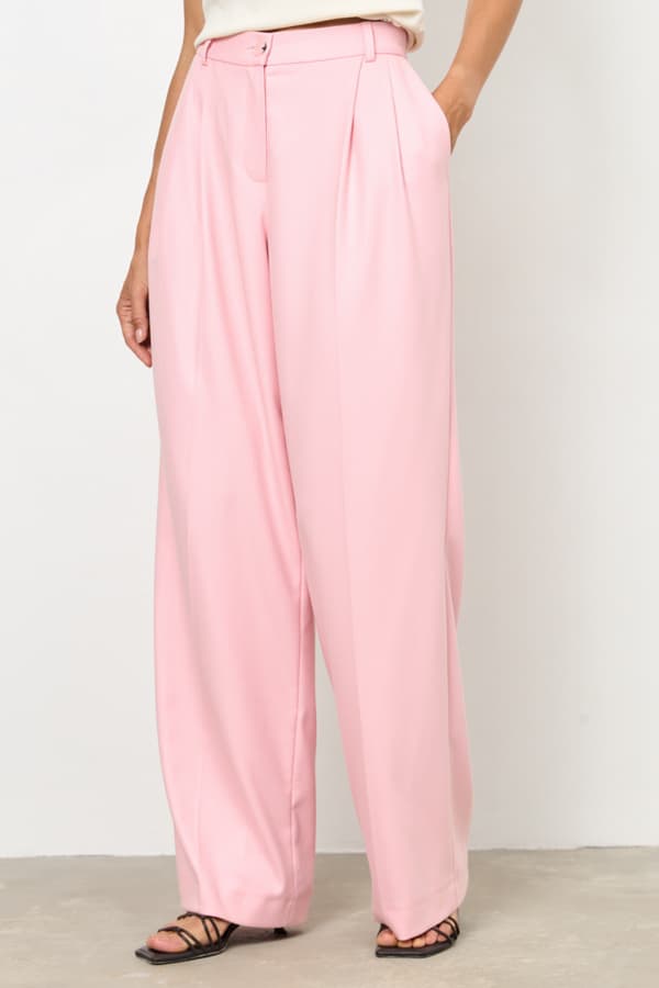 Брюки из костюмной ткани свободного силуэта. На передней половинке выполнены карманы с подкройным бочком, по линии талии заложены складки. На задней половинке - талиевые вытачки и имитация карманов в рамку. Притачной пояс со шлёвками. Застёжка на молнию-гульфик и пуговицу. Такой крой выгодно подчеркнёт длину ваших ног.