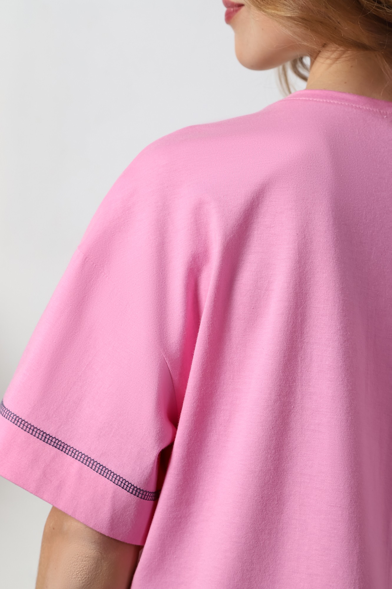 втачными рукавами, горловиной овальной формы и принтом на полочке, выполненным в