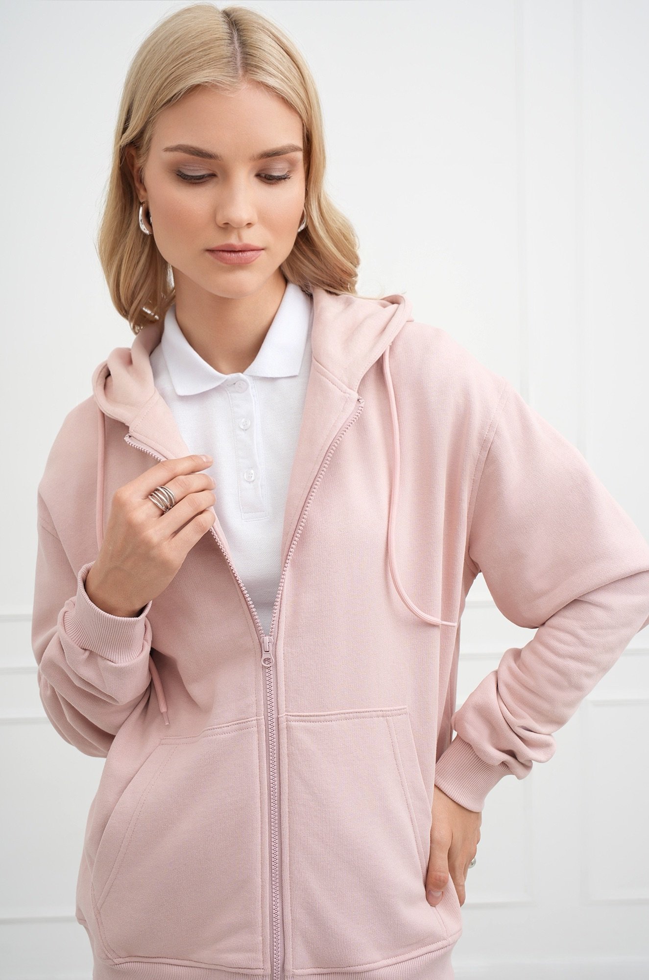 Женская толстовка на молнии — неотъемл..показатьемый элемент вашего образа. Пудровый оттенок, практичный дизайн и мягкая хлопковая ткань делают её идеальной для любого времени года.