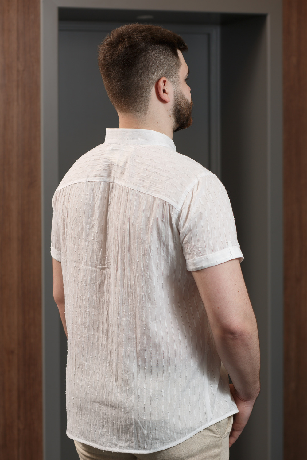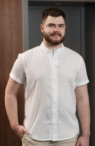 Тонкая и очень легкая летняя мужская рубашка с коротким рукавом. В изделии используется 100% хлопок с перфорацией. Рубашка прекрасно «дышит», не мнется, отлично сидит на фигуре любой полноты.