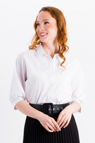 Описание: Романтичная укороченная рубашка с цельновыкроенным рукавом три четверти, собранным на манжеты.