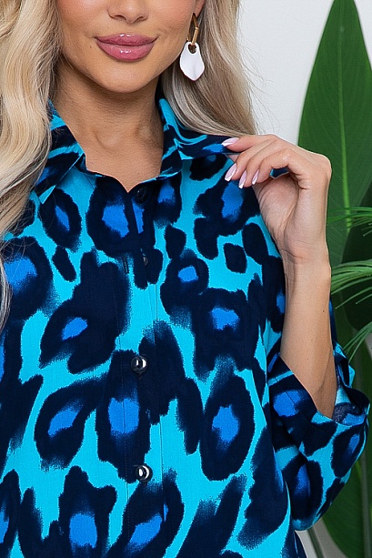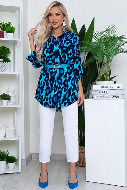 Рубашка свободного силуэта из комфортного,вискозного текстильного полотна с отложным воротником на стойке и центральной застежкой на пуговицы.Ремень в комплект не входит.