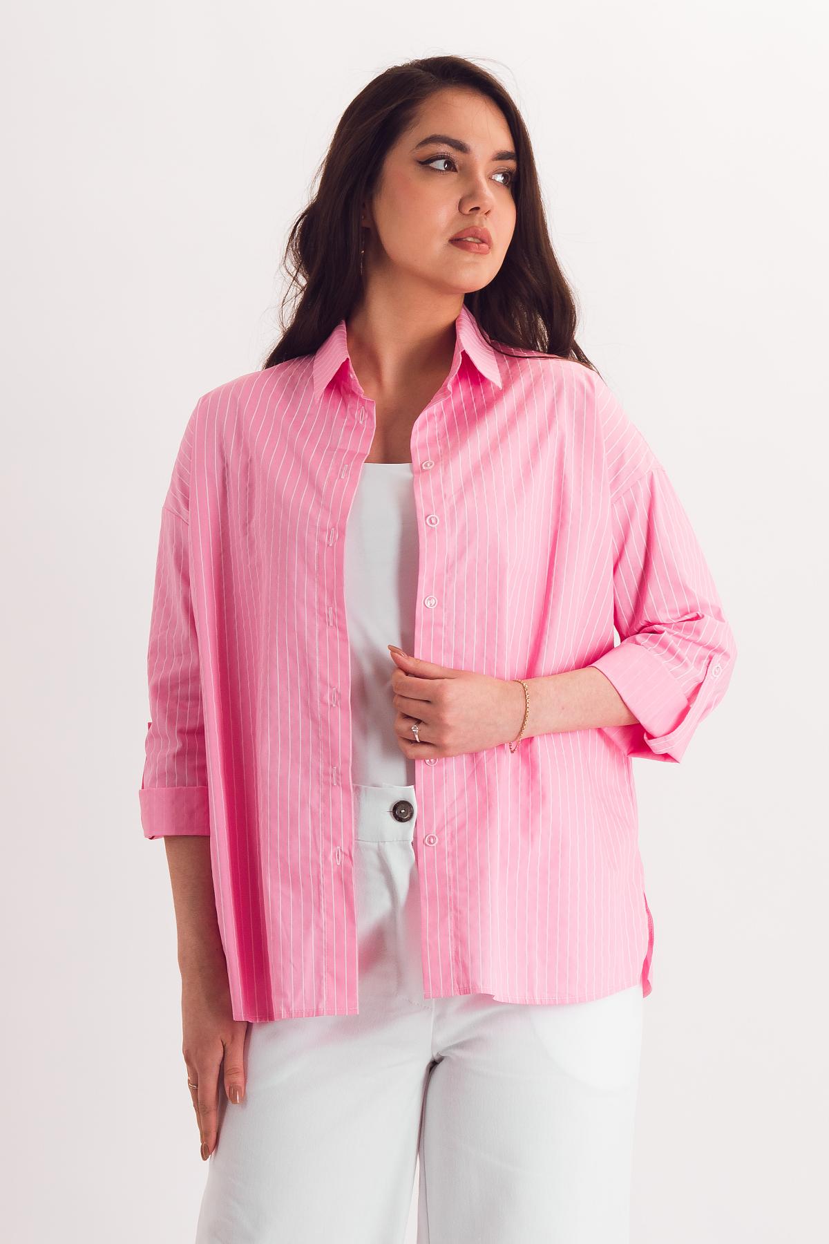 Описание: Свободная рубашка подарит комфорт в любую погоду. Полоска не теряет своей актуальности благодаря чередованию рисунка, а свободный крой на пике модных тенденций! Регулируйте длину рукава на свой вкус за счет паты.