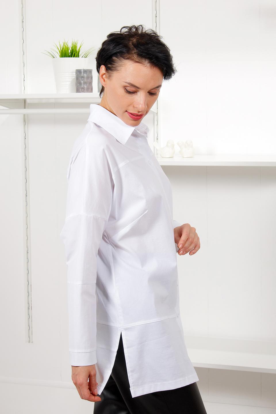 Описание: Туника-рубашка позволяет Вам не только чувствовать себя комфортно, но и быть на волне модных тенденций- прямой крой со спущенным плечом и большие прибавки рисуют стильный силуэт. Оригинальные подрезы с фигурными строчками зрительно разбивают фигуру.