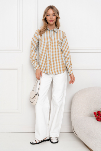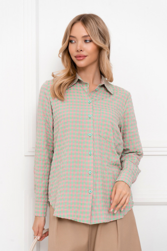 Классическая рубашка из жатого хлопка сшита из стильного материала в клетку. Модель можно носить, как самостоятельную вещь или как часть многослойного образа. Заправленная или на выпуск, с ней можно создать более десяти прекрасных комплектов. На груди рубашки есть большой, удобный карман, рукава на манжетах, пуговицы с отложного воротничка до низа. Идеальный вариант для выразительных и органичных комплектов.