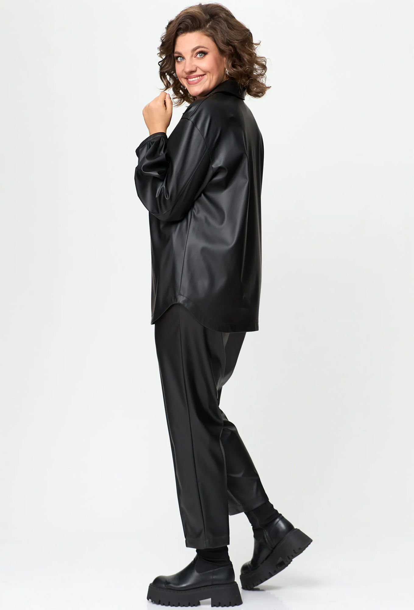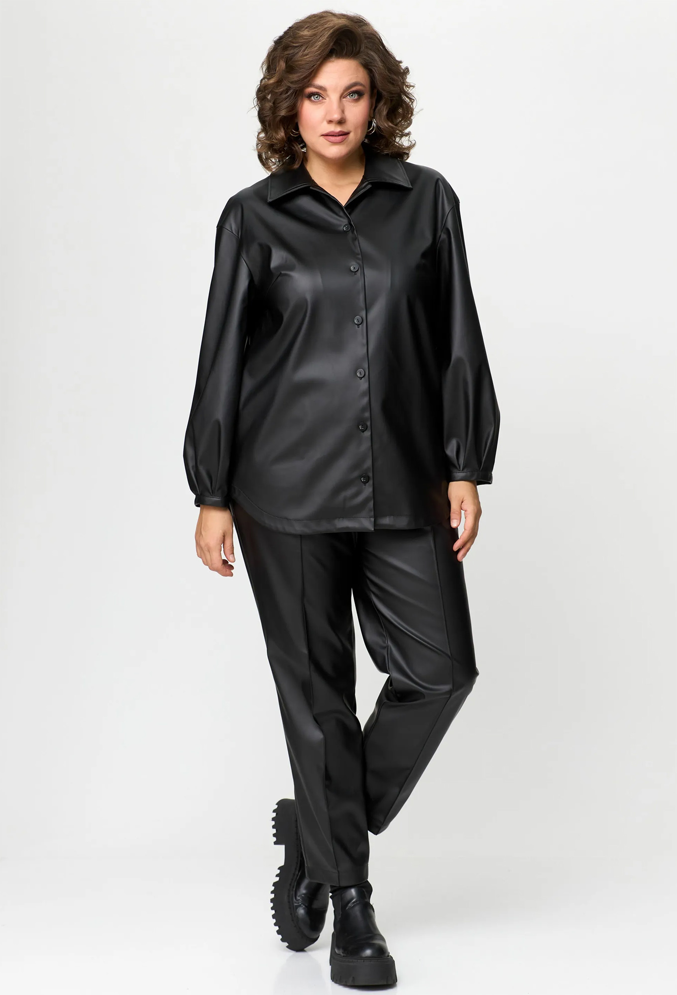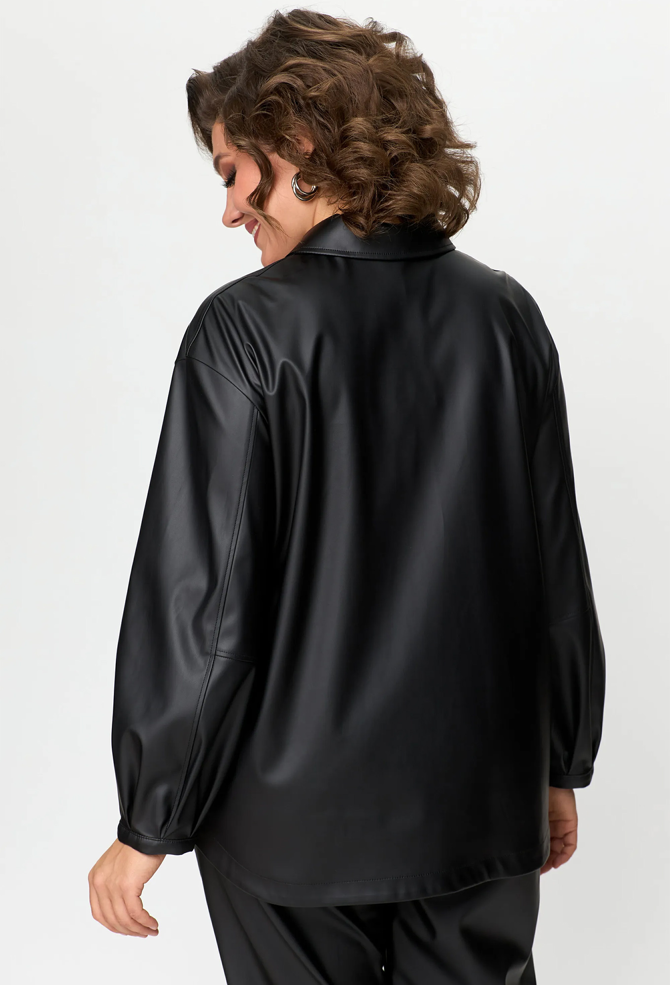 Модель: Анастасия Мак 1139 черный ..показать>Рост: 164 см (девушка на фото ростом 170см) Сезон: Круглогодичный Тип ткани: 100% ПЭРубашка прямого силуэта, выполнена из экокожи._x000D_