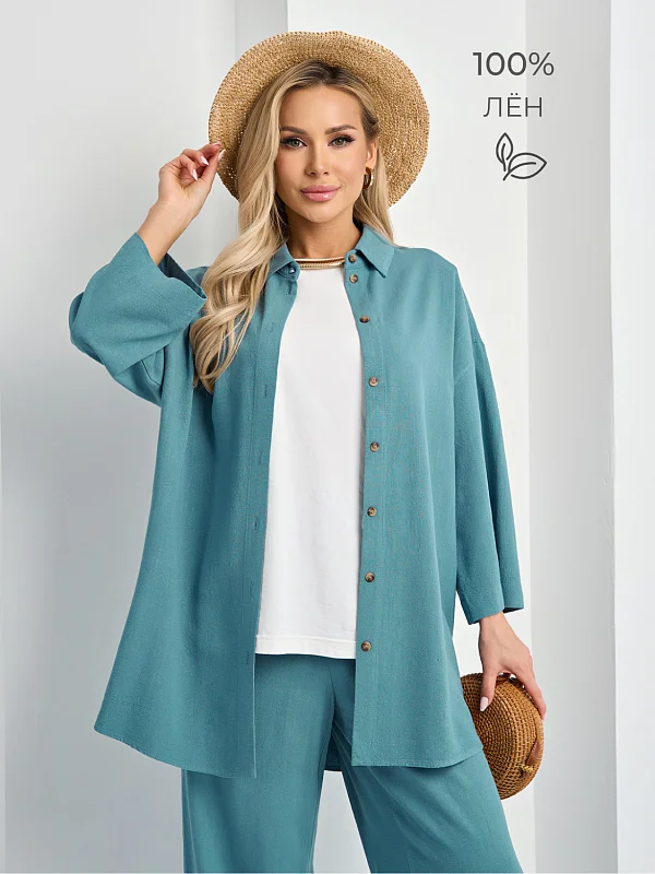 Рубашка свободного силуэта со спущенной линией плеча.