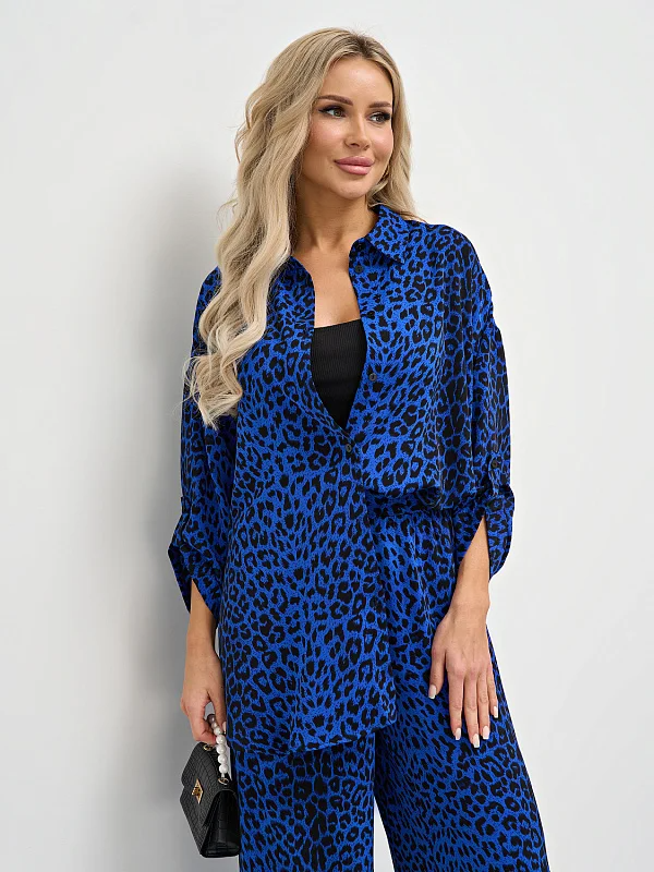 Рубашка свободного кроя с воротником.