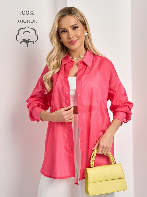 Рубашка свободного кроя со спущенным плечом.