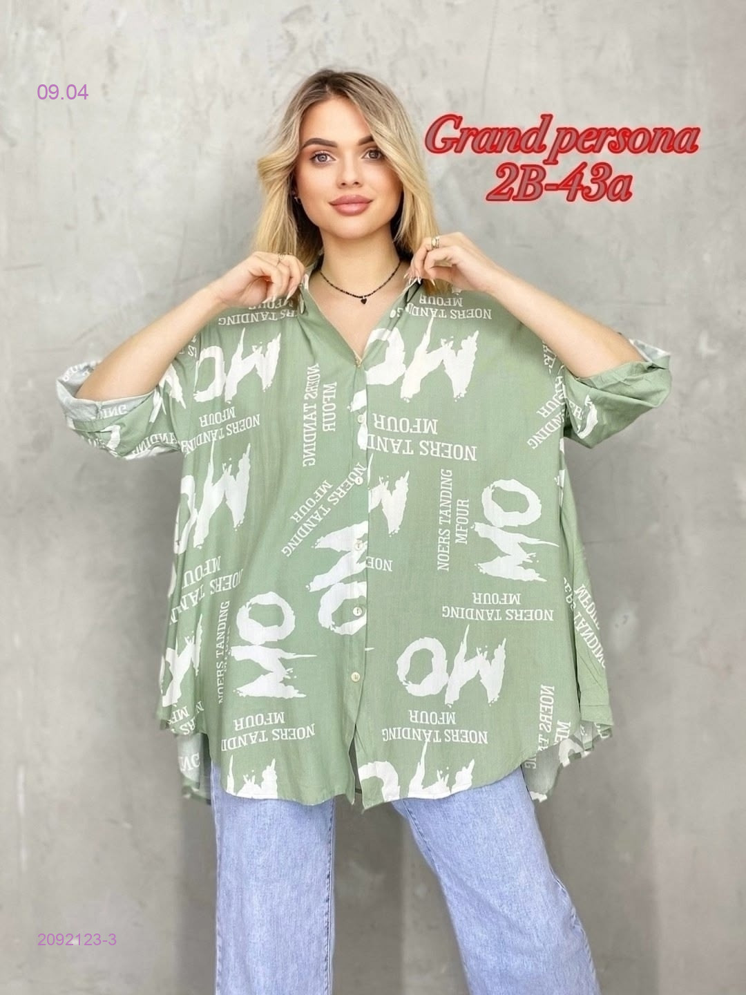 Материал: штапель Цвет: Мятный..показатьi>СТИЛЬНЫЕ РУБАШКИ —-Ткань: Штапель (качественная )—-Длина: спереди 75см спина 85см—-Размер:3XL(54-56),4XL(56-58),5XL(58-60),6XL(60-62), 7XL(62-64)Свободного кроя, как оверсайз Качество люксi>