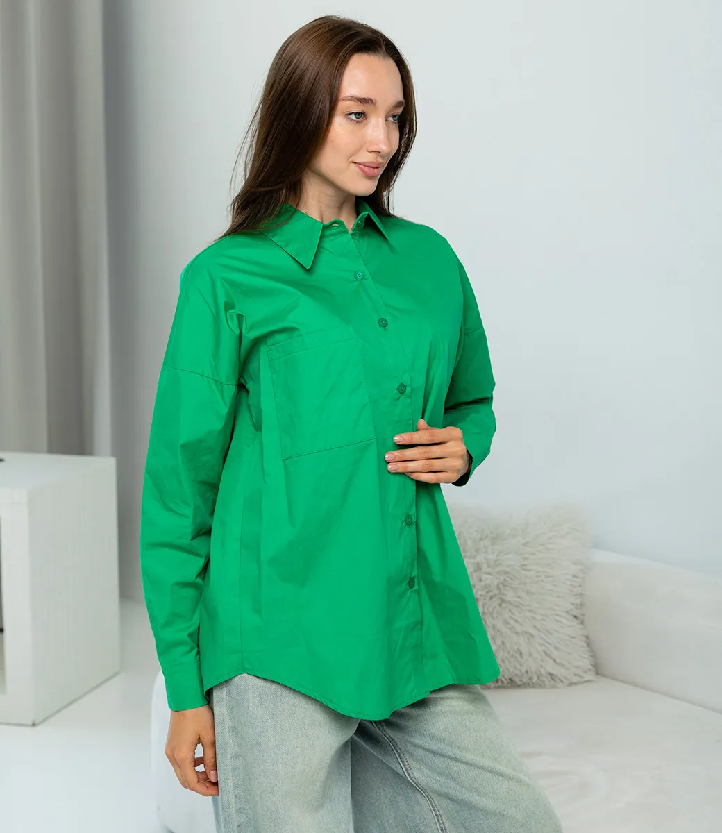 Свободную рубашку на пуговицах с удлиненной спинкой можно носить по верх футболок и кроп-топов и как базовый элемент гардероба. Модель выполнена из прочного хлопка с добавлением полиэстера, благодаря чему рубашка отлично держит форму и обладает высокой износостойкостью. Рост модели: 168, параметры: 85-63-92.