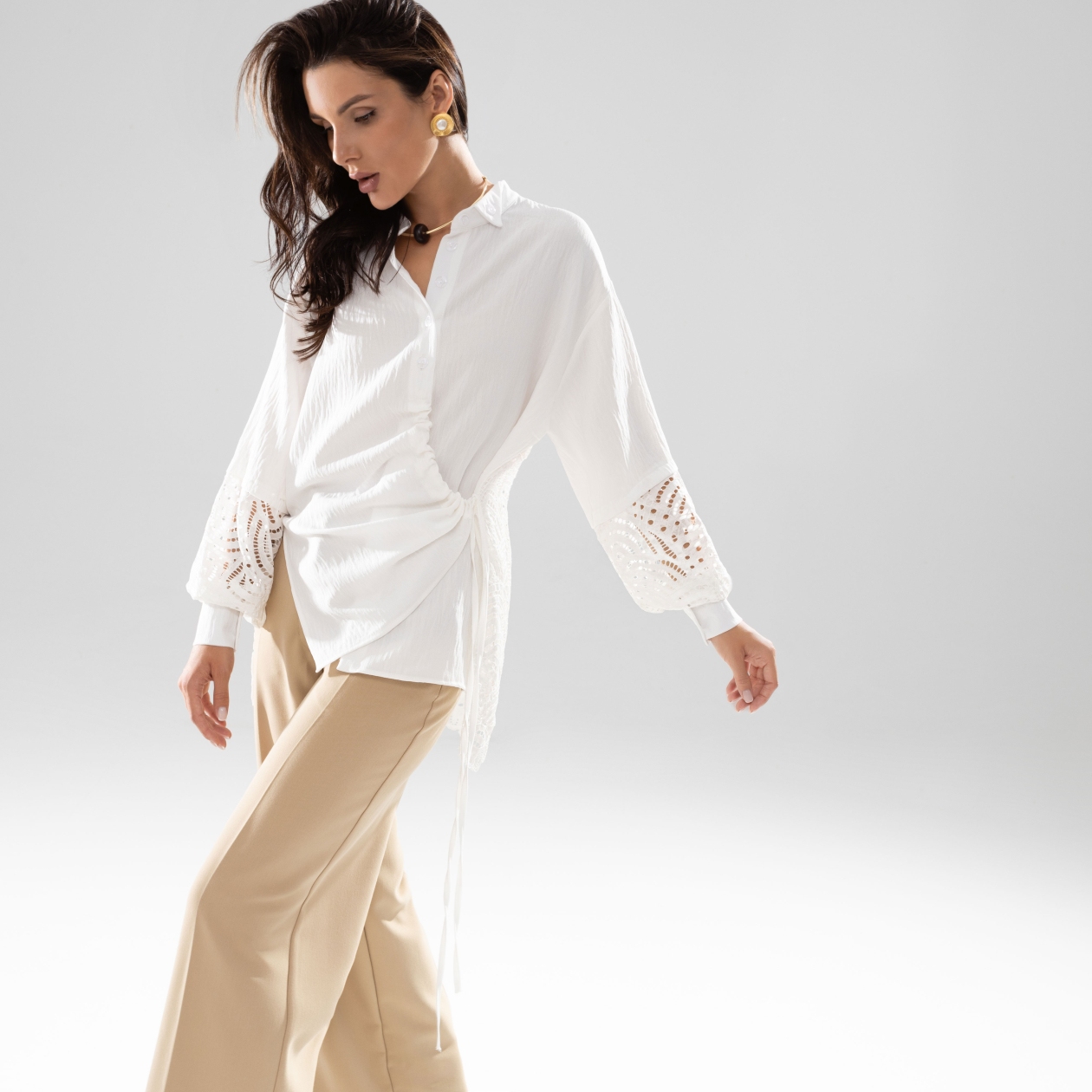 Рубашка «Дивная смелость» – это настоящее воплощение роскоши и утончённого стиля, созданное для женщин, любящих смелые решения и неповторимость. Исключительный асимметричный крой этой одежды подчёркивает её оригинальность и деликатную гармонию. Жатка и вставки из кружева создают поистине незабываемый образ, который невозможно не заметить. Каждая деталь продумана до мелочей, чтобы удовлетворить самые изысканные вкусы и стремления. Покупая такие рубашки оптом, вы получаете возможность предложить своим клиентам нечто особенное, что пробуждает фантазию и влюбляет с первого взгляда.