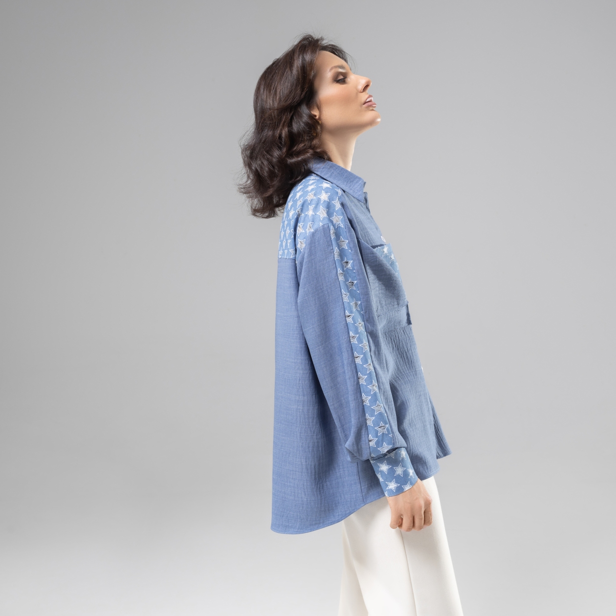 Встречайте рубашку дизайнерскую «Богиня стиля» – воплощение безупречного стиля, комфорта и элегантности. Эта рубашка женская станет настоящей находкой для тех, кто ценит высокое качество и оригинальность в каждой детали. Изготовленная из плательной ткани «Лерисс» и «Джинс перфорация», она предлагает уникальный перфорированный принт, который придаёт изделию нотку экстравагантности. Изящная прямого кроя, рубашка отлично сидит на любой фигуре и подчеркивает женственность её обладательницы. Благодаря акцентным деталям и съемному карману на пуговице, этот модный пазл заслуживает вашего внимания, особенно если вы планируете покупку оптом.