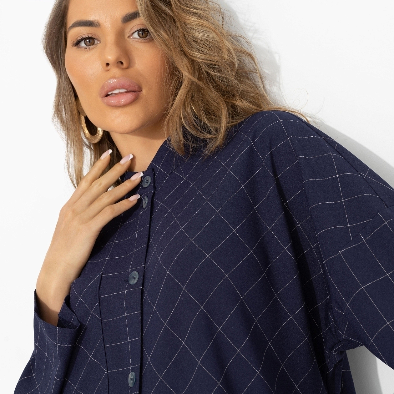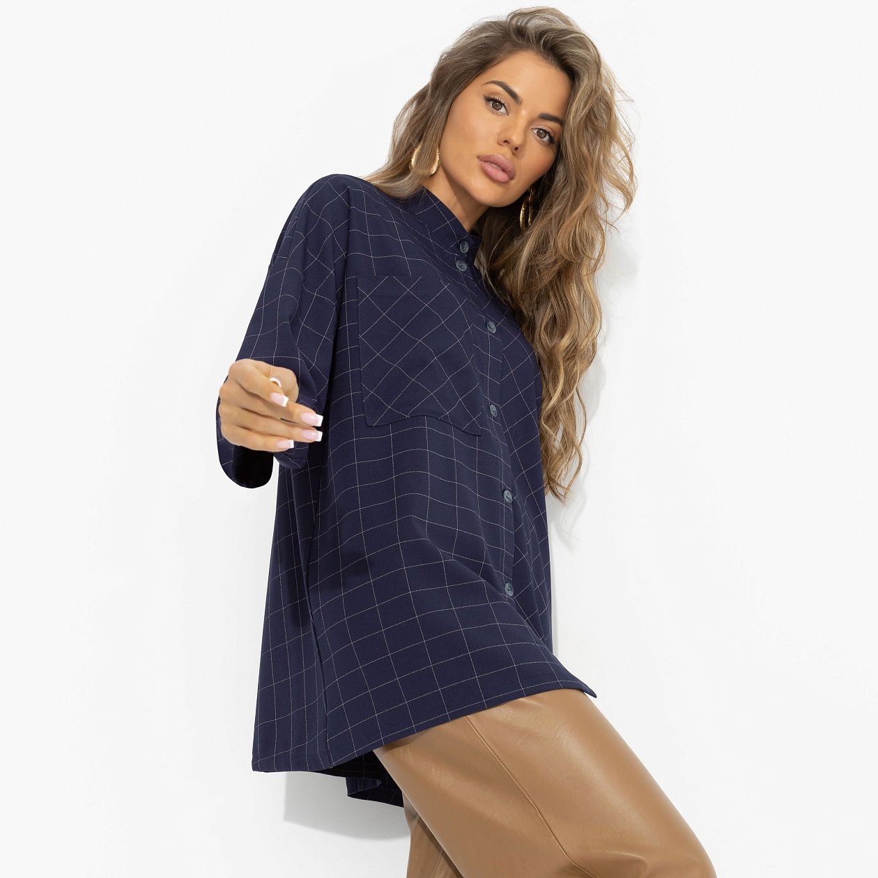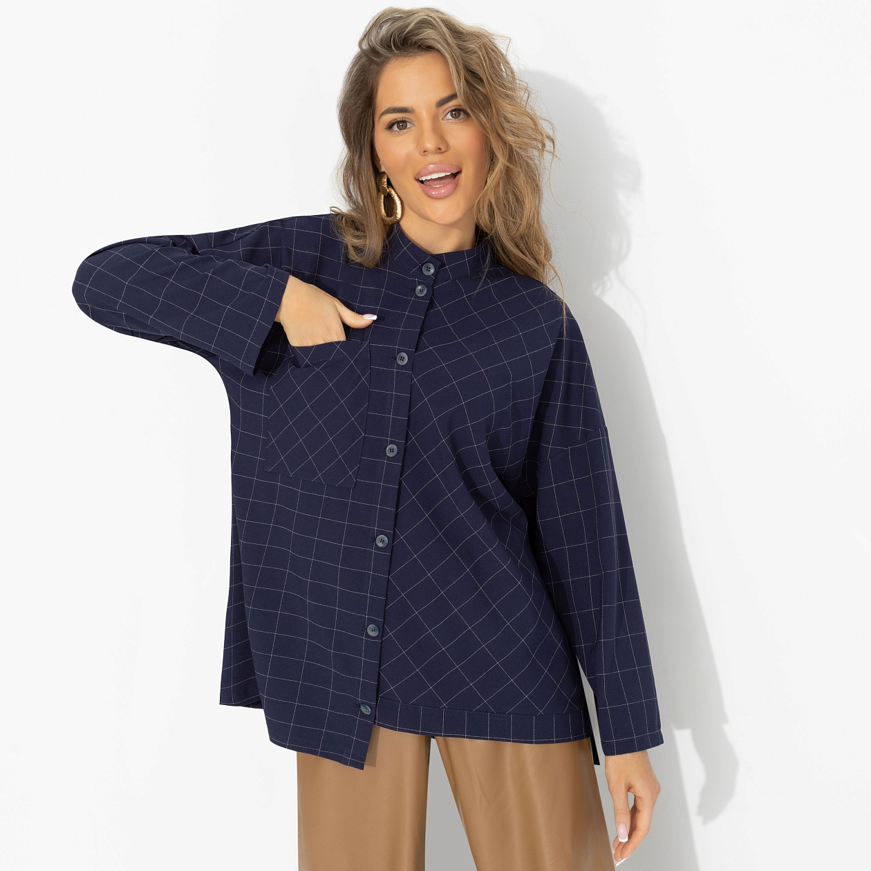 Что выбрать, если классика кажется слишком предсказуемой? Эту рубашку. Она про рабочий день, который внезапно заканчивается приятным ужином, и образ не требует переодеваний. Сдержанная, но с характером – прямо как ты. Креп «булгари» приятен к телу и хорошо держит форму. Прямой крой позволяет носить рубашку навыпуск или заправленной. Лёгкая эластичность добавляет комфорта. Подходит для офиса, встреч и многослойных образов.