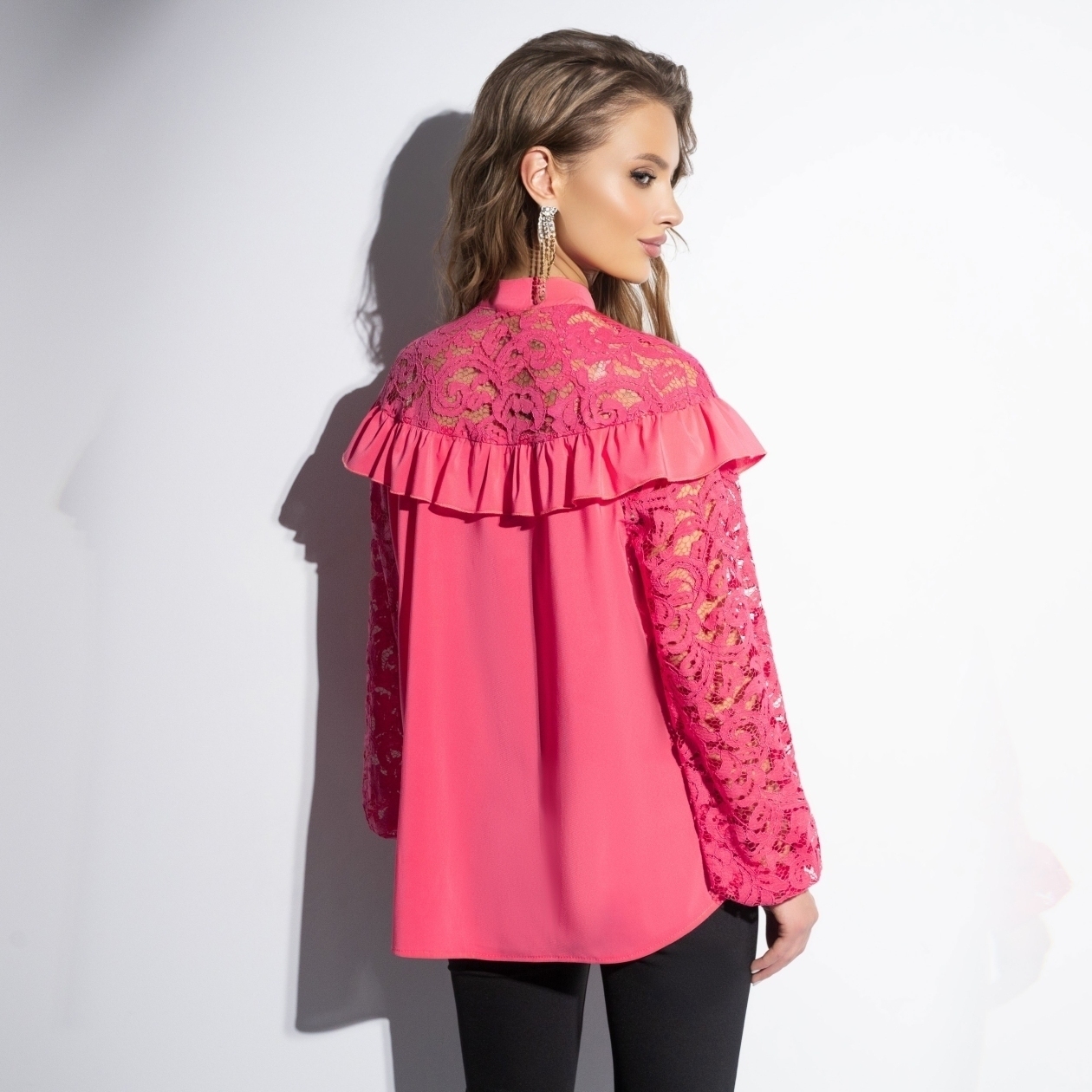 Когда в гардеробе есть эта рубашка от ЧАРУТТИ, можно опоздать, перепутать адрес, попасть под дождь – но выглядеть ты всё равно будешь так, будто всё это заранее прописал личный стилист. Яркий розовый, кружевные рукава и волан по линии плеч создают образ женщины, у которой при любых поворотах сюжета макияж на месте, улыбка уверенная, а одежда сидит безупречно. «Королева момента» подчёркивает мягкость, усиливает притяжение и превращает обычный день в начало красивой любовной истории. Свободный силуэт, планка на пуговицах и объёмные рукава на манжете обеспечивают комфорт и позволяют рубашке одинаково хорошо смотреться и с лаконичными брюками, и с узкой юбкой.