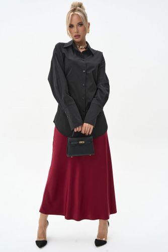 Стильная удлинённая рубашка прямого кроя с акцентом на талию.