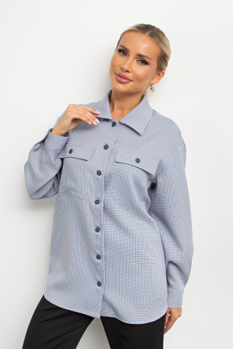 Стильная рубашка свободного кроя. Модель с накладными карманами на пуговицах. Горловина оформлена отложным воротником, переходящим в планку с застежкой на петли и пуговицы. Длинный втачной рукав со спущенным плечом, оканчивается притачной манжетой. Низ фигурный. Рубашку можно сочетать с джинсами, кожаными брюками, а так же создавать многослойные стильные образы.