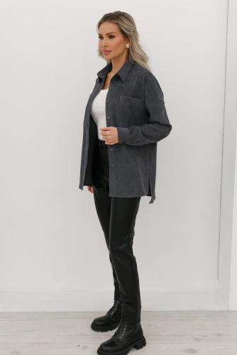 Стильная рубашка свободного кроя. Модель с накладными карманами на пуговицах. Горловина оформлена отложным воротником, переходящим в планку с застежкой на петли и пуговицы. Длинный втачной рукав со спущенным плечом, оканчивается притачной манжетой. Низ фигурный. Рубашку можно сочетать с джинсами, кожаными брюками, а так же создавать многослойные стильные образы.
