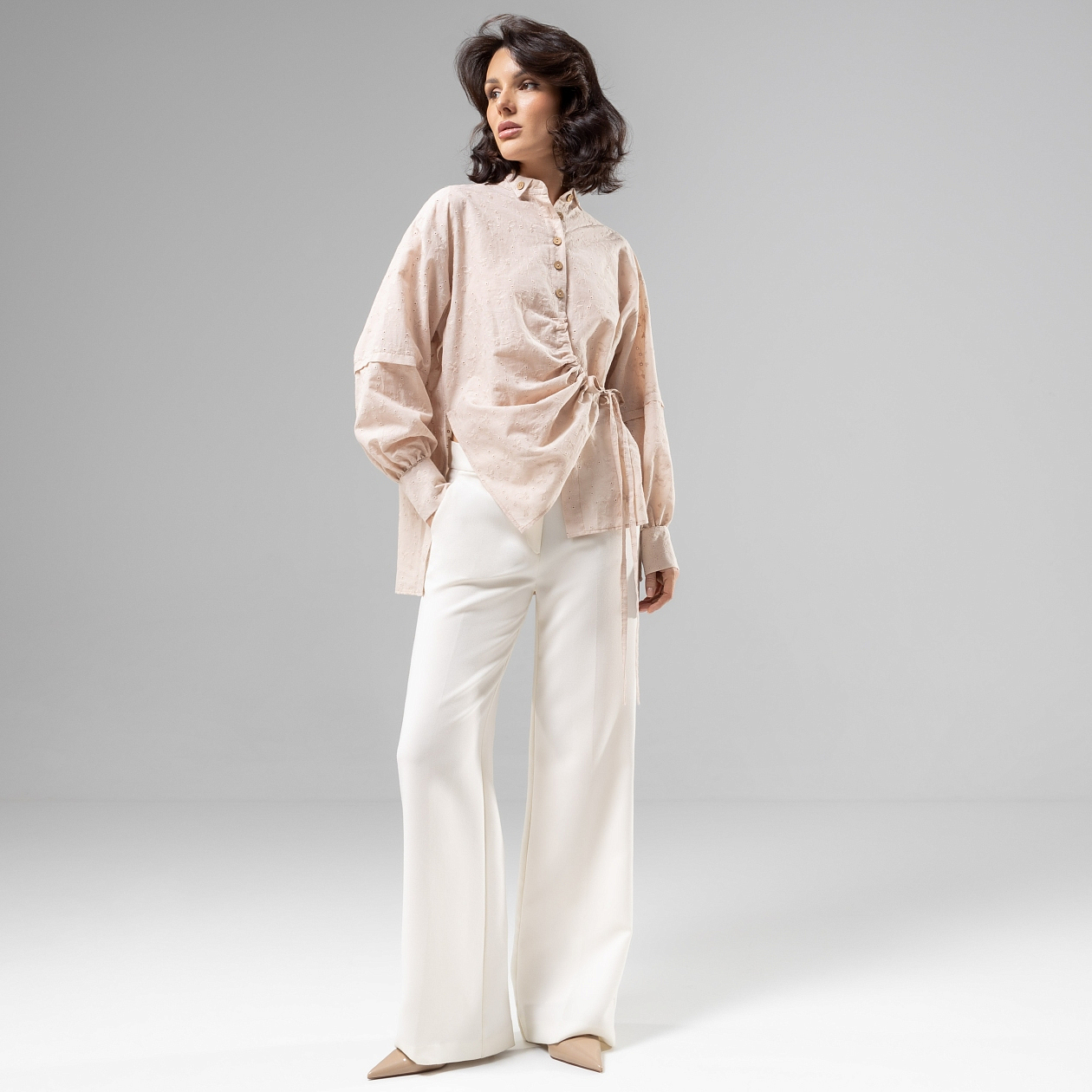 Идеальный work-life баланс в рубашке CHARUTTI. Асимметричный трендовый крой, безупречное качество пошива и абсолютный тактильный комфорт. Для ощущения полноты жизни. Рубашка с асимметричной линией застежки. Материал с текстурой-вышивкой высочайшего качества. Премиальная фурнитура под дерево. Разрезы по бокам. Все швы тщательно обработаны. Высокий контроль качества изделия.