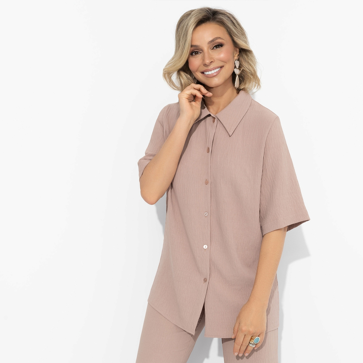 Рубашка из фактурной ткани, Шёлковая уверенность (капучино)