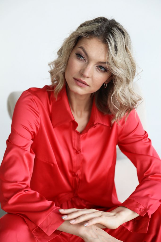 Параметры модели: 175 см, грудь 86 см, талия 66 см, бедра 96 см.