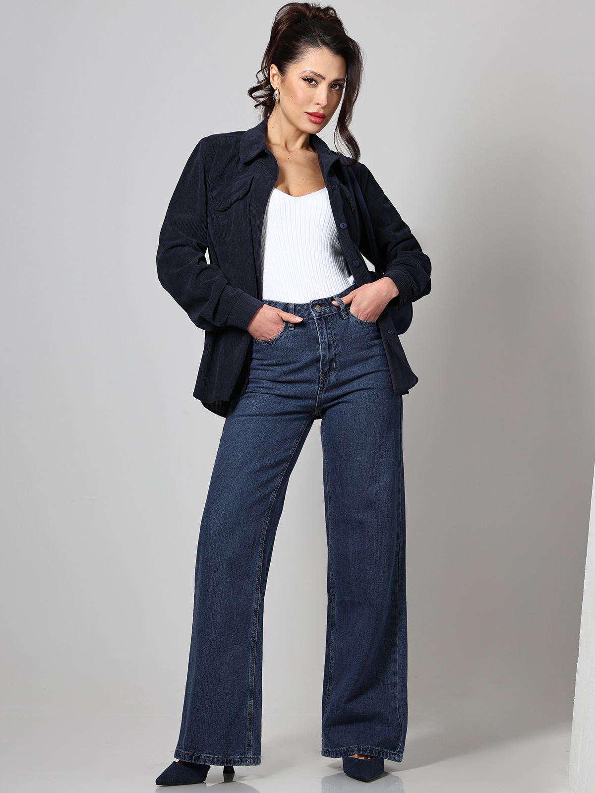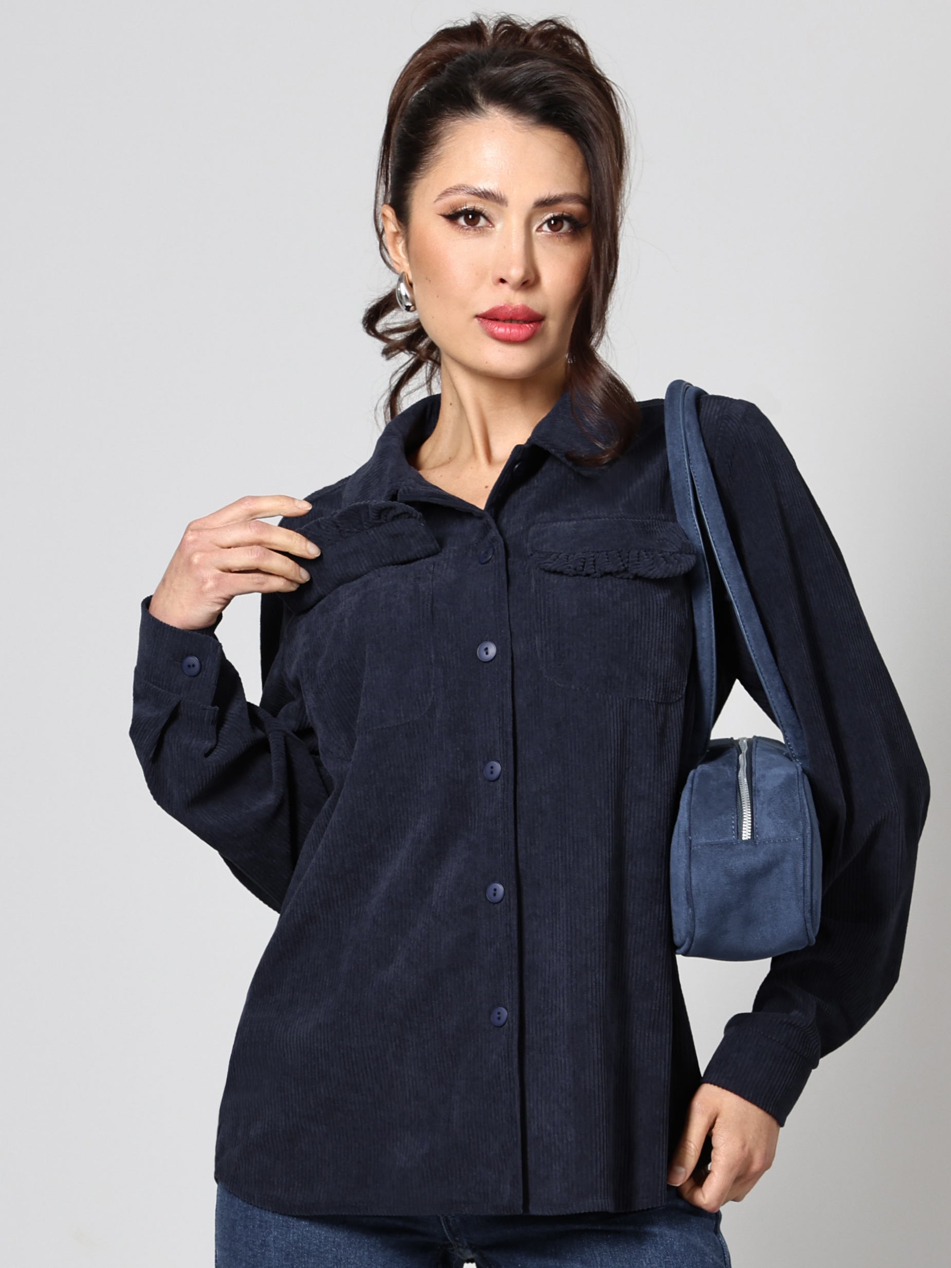Рубашка из вельвета темно-синяя