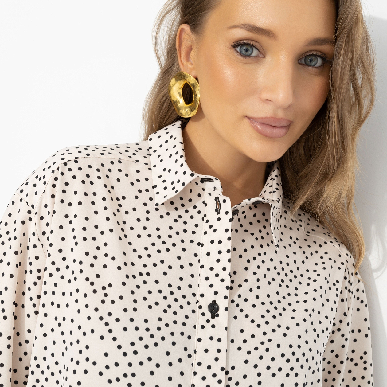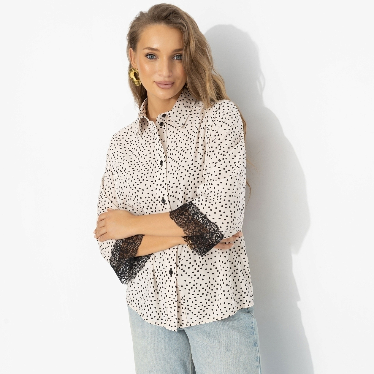 В новой рубашке от ЧАРУТТИ удачно сочетаются дисциплина и флирт. Нейтральный крой задаёт деловой ритм, а контрастные кружевные манжеты и принт добавляют модный поворот – тот самый твист, который делает образ запоминающимся. Рубашка легко интегрируется в офисный гардероб, но выглядит свежо и небанально – работать красиво становится привычкой.