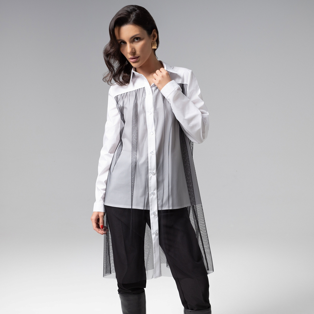 Рубашка комбинированная с сеткой, Срочно на обложку (white)