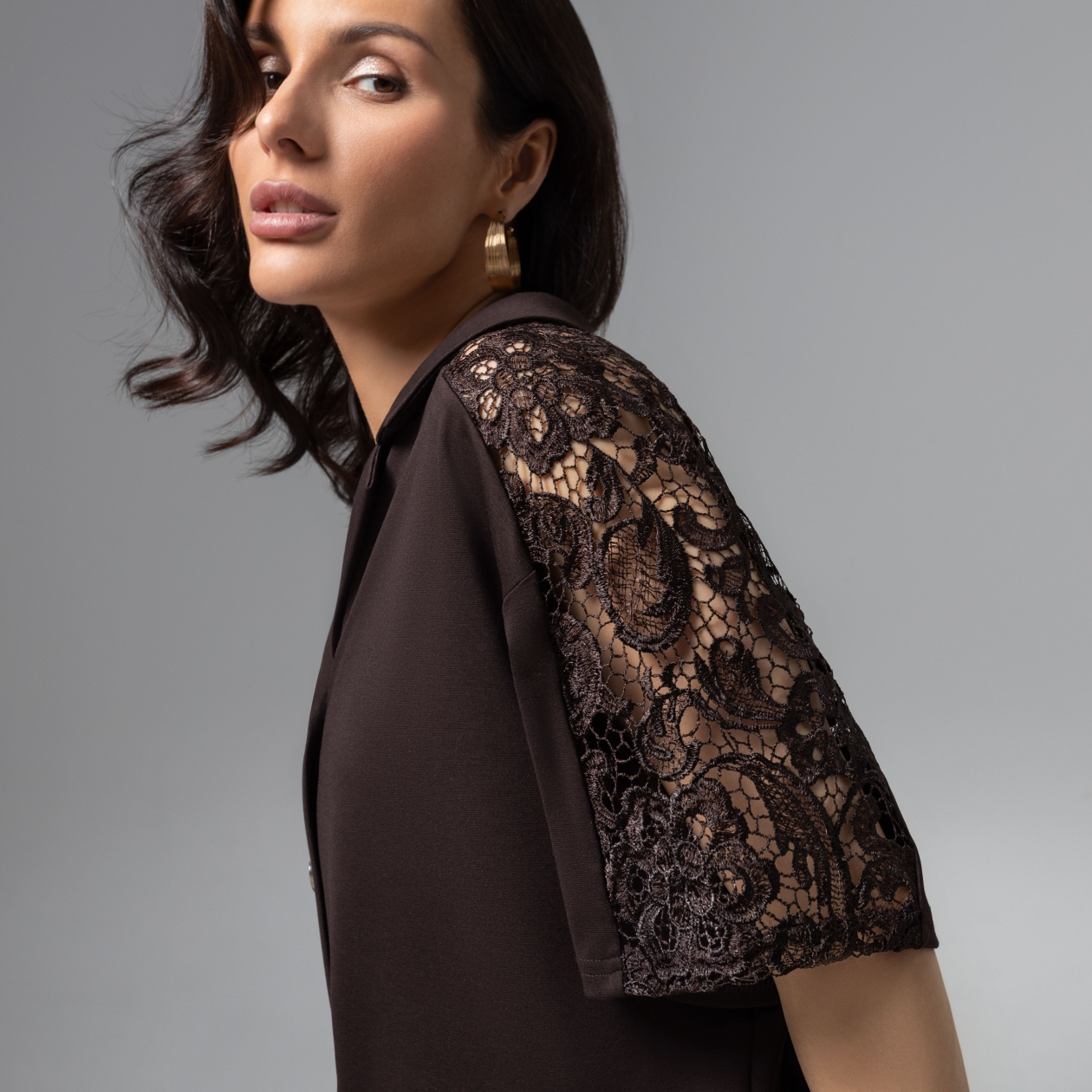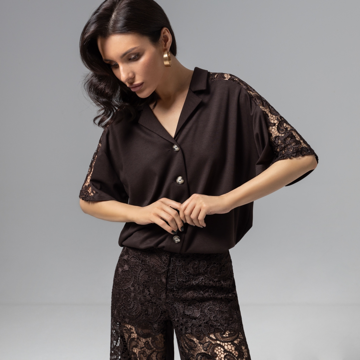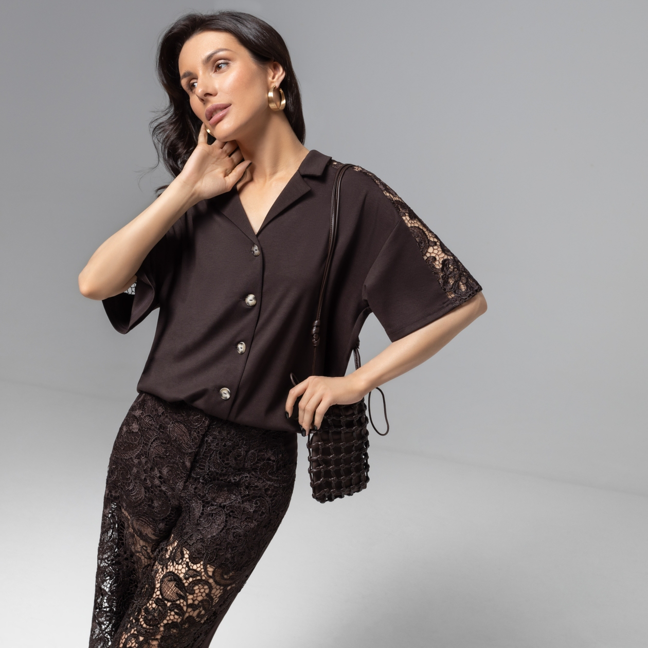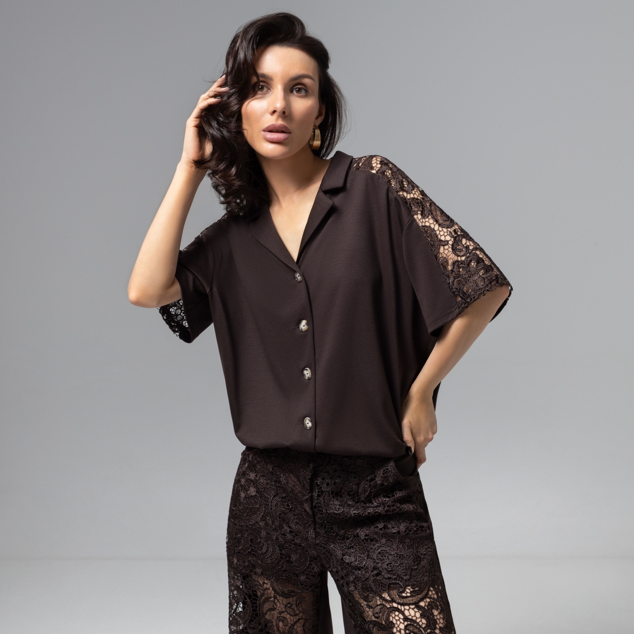 СТ. ЦЕНА 2250 руб//Рубашка комбинированный с кружевом, Стильное дежавю (горький шоколад)