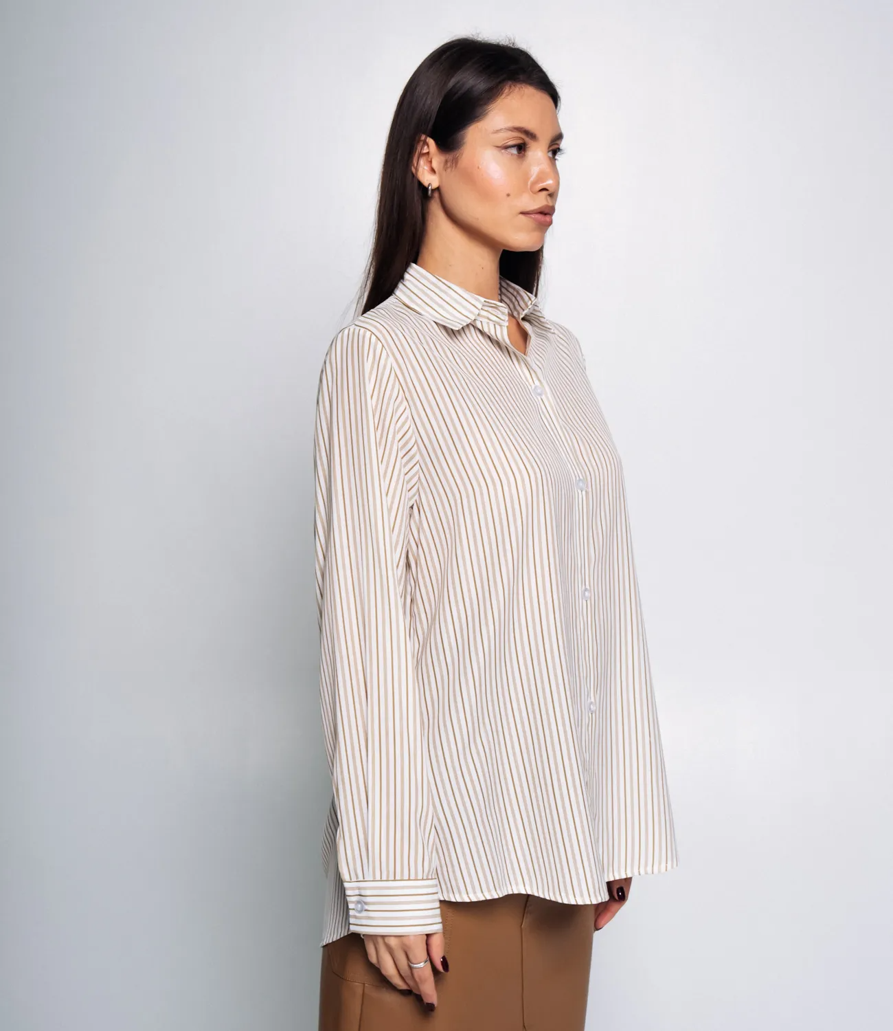 Рубашка – это вещь, которая подчеркивает привлекательность каждой девушки. Модель рубашки выполнена в классическом стиле с легкими вертикальными полосками, что придаёт ей элегантный вид. Эта модель также удобно сидит на фигуре благодаря свободному крою, который не сковывает движения. Насыщенные цвета полосок делают рубашку яркой, но при этом сохраняют чувственную сдержанность, что позволяет легко комбинировать её с различными аксессуарами. Благодаря своей универсальности, рубашка отлично смотрится как в сочетании с классическими брюками для офисного стиля, так и с джинсами для более расслабленного образа. Ее предпочитают покупательницы, которые ценят сочетание качества и цены. Крой подчеркивает изящность фигуры. Компания-производитель знает, как разработать стильные решения. Для изготовления использована ткань 65% хлопка и 35% полиэстера, которая характеризуется отличным качеством. Даже после большого количества стирок изделие не утратит первоначальной привлекательности. Вы обязательно будете его носить с радостью. Обратите внимание на цвет. Он является насыщенным и полностью соответствует фотографии на сайте. Чтобы вы были уверены в размере, мы представили на странице таблицу. Воспользовавшись ею, вы сможете самостоятельно обмерить себя и удостовериться. Установленная нами цена является приемлемой. Подарите себе удовольствие быть элегантной! Рост модели: 164, параметры: 83-61-89.