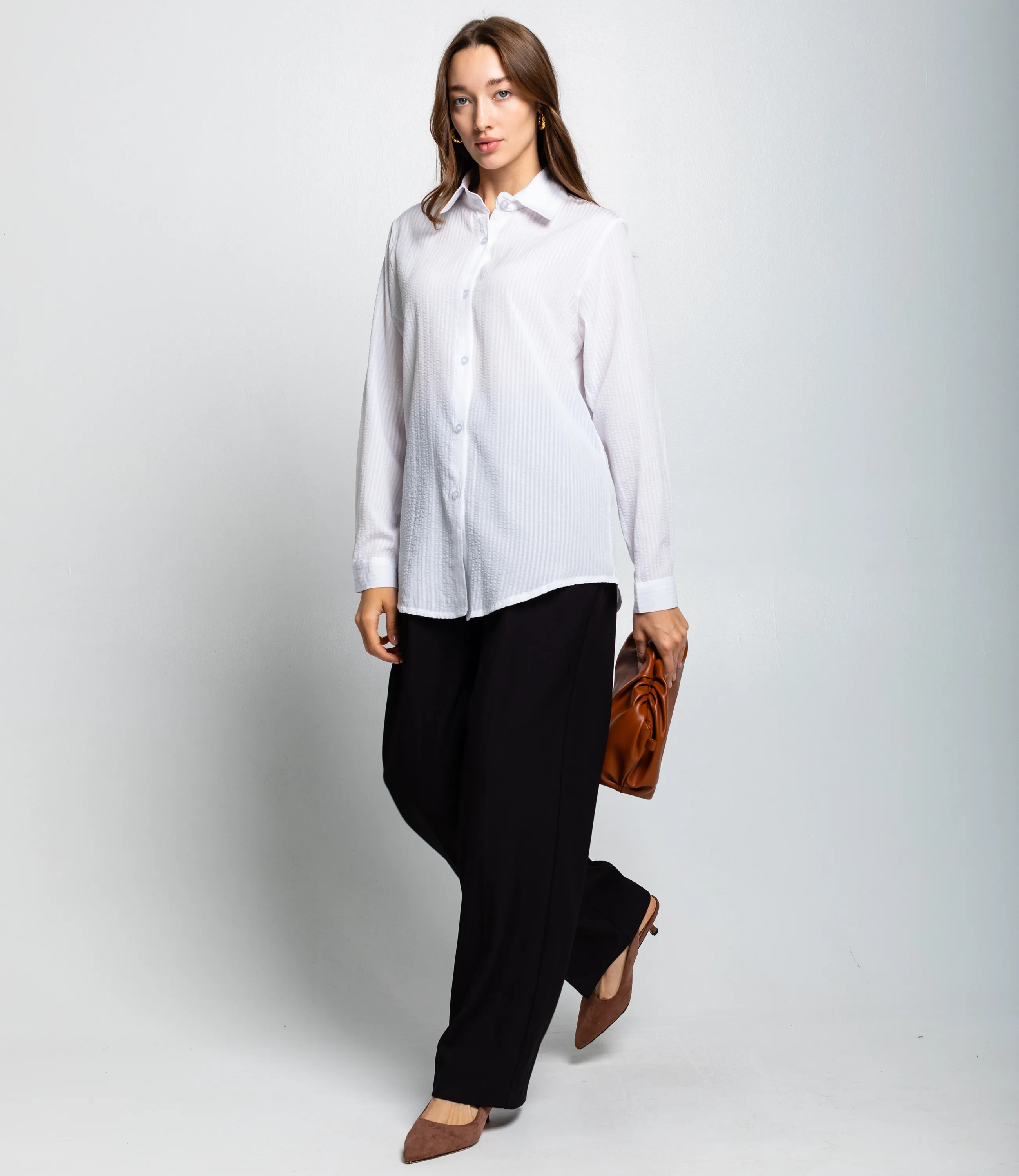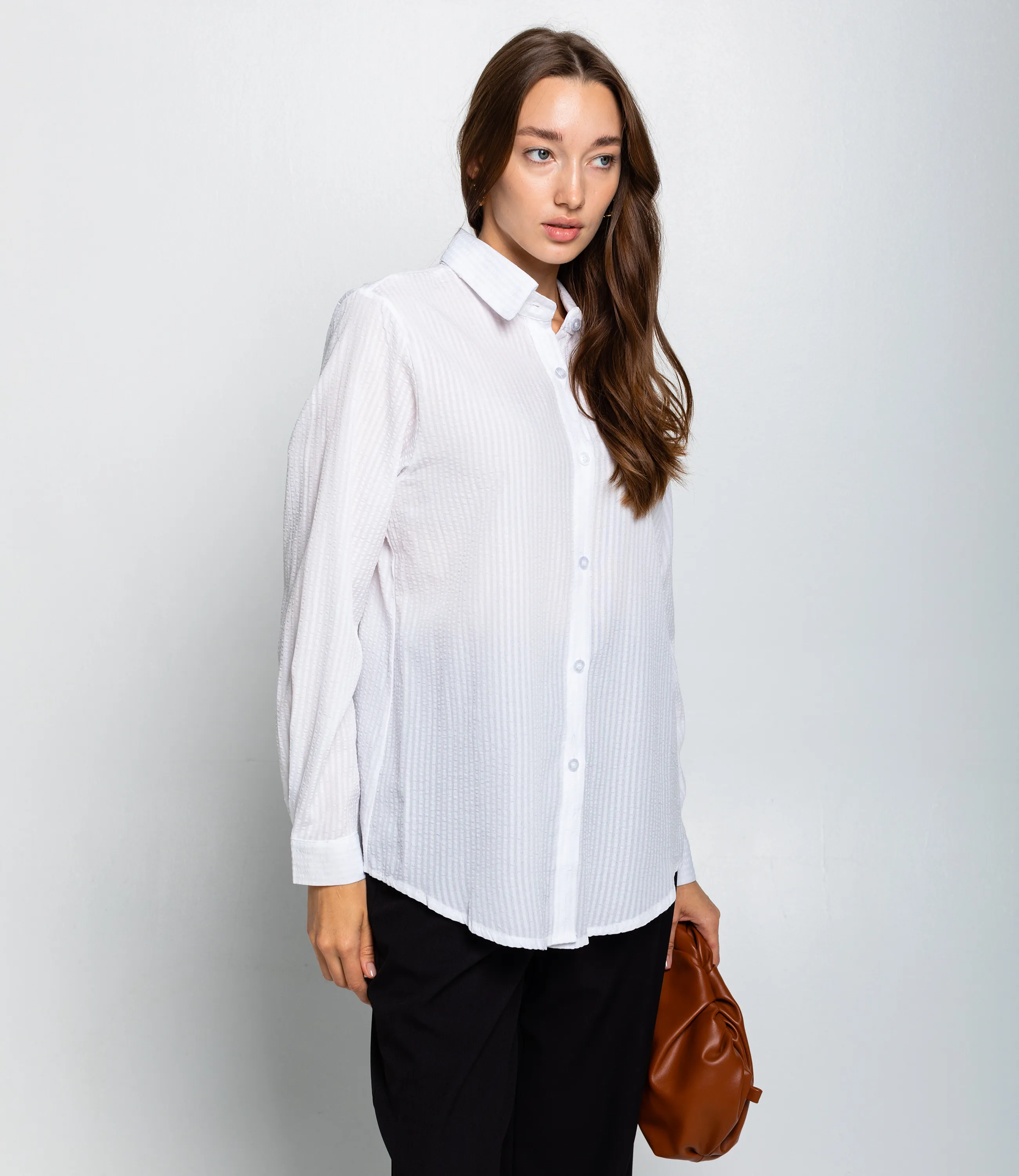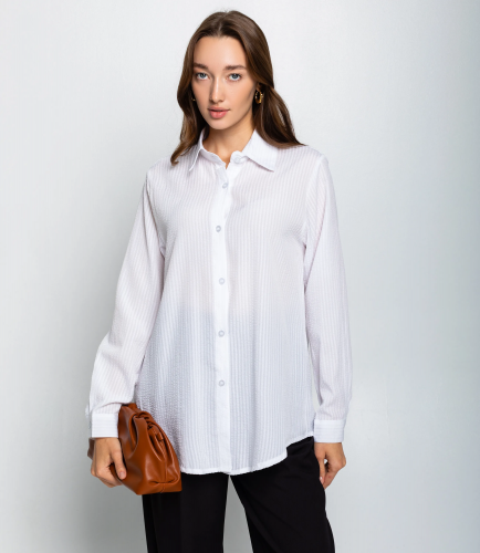 Рубашка — это часть гардероба, которая подчёркивает привлекательность и деловой стиль каждой покупательницы. Модель выполнена из лёгкой ткани с тонким вертикальным полосатым рисунком, что придаёт изделию аккуратный и стильный вид. Фасон свободный, слегка удлинённый, с классическим воротником и длинными рукавами на манжетах; спереди рубашка застёгивается на пуговицы по всей длине, что делает её универсальной и удобной в носке. Для пошива использован 100% полиэстер: материал лёгкий, не мнётся, быстро сохнет, хорошо держит цвет и форму при частых стирках и не требует сложного ухода. Полиэстер обеспечивает также высокую износостойкость и низкий процент бракованных изделий при интенсивной эксплуатации в розничной продаже. Для оптовых покупателей это выгодная и оборотистая позиция: универсальный крой легко входит в разные стилистические решения — от офисного до повседневного — и упрощает формирование размерных рядов. Рекомендовано комплектовать рубашки в капсулы с брюками и юбками, предлагать наборы «верх + низ» для увеличения среднего чека и размещать модель в зонах с высокой проходимостью, где важна быстрая оборачиваемость. Цвета и рисунок соответствуют фотографиям в карточке товара, на странице размещена подробная таблица размеров для точного подбора. По запросу предоставляем образцы для оценки качества, гибкие минимальные партии, готовые POS‑материалы и фотоконтент, а также коммерческое предложение под ваши объёмы и оперативную логистику. Готовы адаптировать партию под ассортимент вашего магазина и сопровождать запуск модели, чтобы рубашки приносили стабильную прибыль и высокий клиентский отклик. Рост 168 см, 85-63-92.