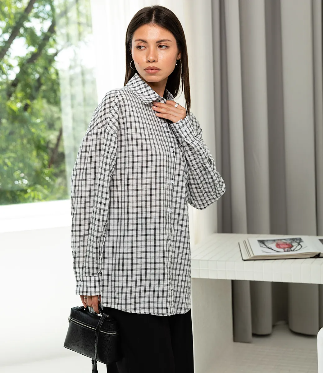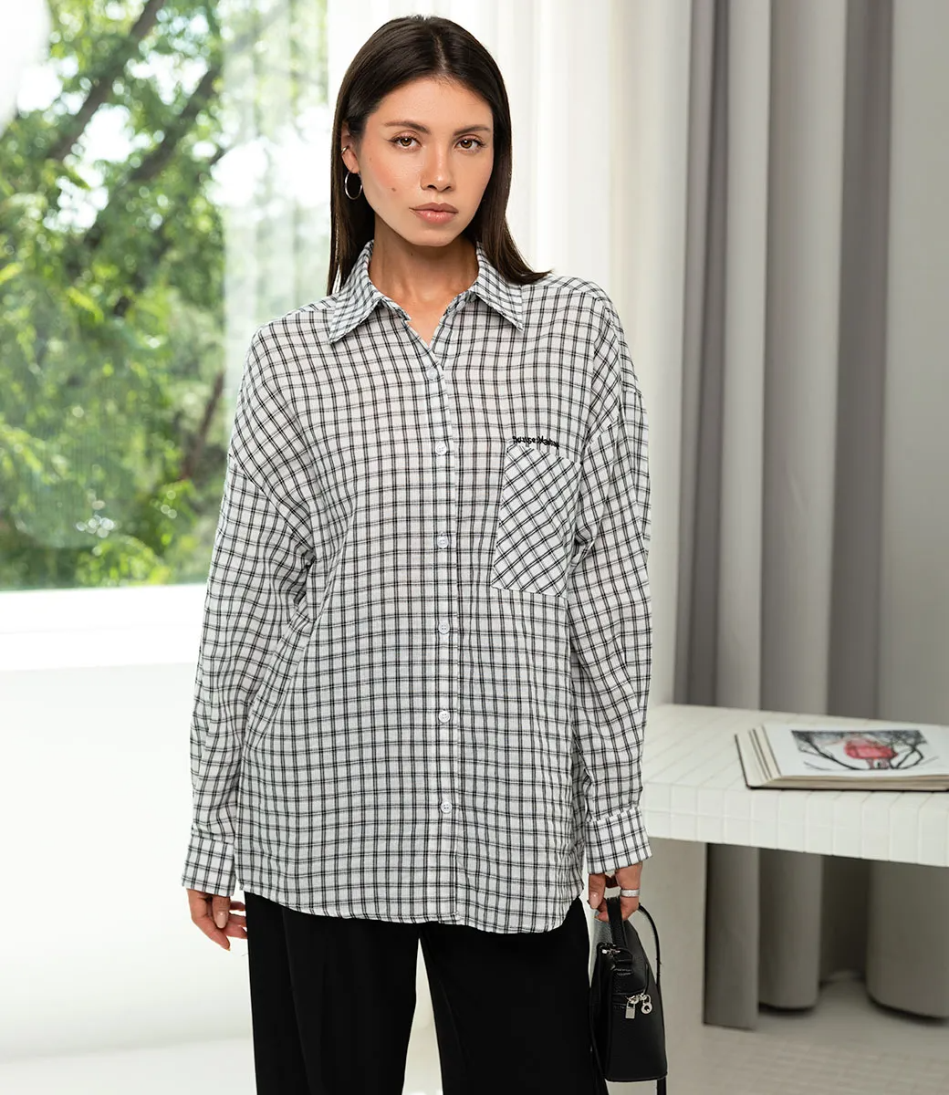 Рубашка — это стильный и универсальный элемент гардероба, который подчеркивает индивидуальность каждой женщины. Эта модель свободного кроя с длинными рукавами и отложным воротником удобна и актуальна для любых случаев. Расстегивающаяся по центру планка с пуговицами добавляет функциональности и позволяет создать различные образы, от casual до более формальных. Клетчатый узор с мягкой структурой ткани делает рубашку не только привлекательной, но и комфортной в носке. Манжеты рукавов на пуговицах добавляют изюминку и завершенность, а немного удлиненный силуэт создает расслабленный и стильный образ. На груди располагается небольшой вышитый логотип, что привносит дополнительную нотку эксклюзивности и внимания к деталям. Для изготовления рубашки использованы качественные материалы: 65% хлопка и 35% полиэстера, что гарантирует долговечность и отличное состояние даже после многочисленных стирок. Эта рубашка станет идеальным решением для оптовиков, желающих предложить своим клиентам актуальный и стильный элемент гардероба, который подходит как для повседневной носки, так и для особых случаев. На нашем сайте представлена таблица размеров, которая поможет вашим клиентам выбрать идеальную посадку. Убедитесь, что ваше предложение по цене является приемлемым и выгодным, ведь стильная и комфортная рубашка — это не просто одежда, это возможность быть элегантной и неповторимой! Рост модели 164 см., 83-61-89.