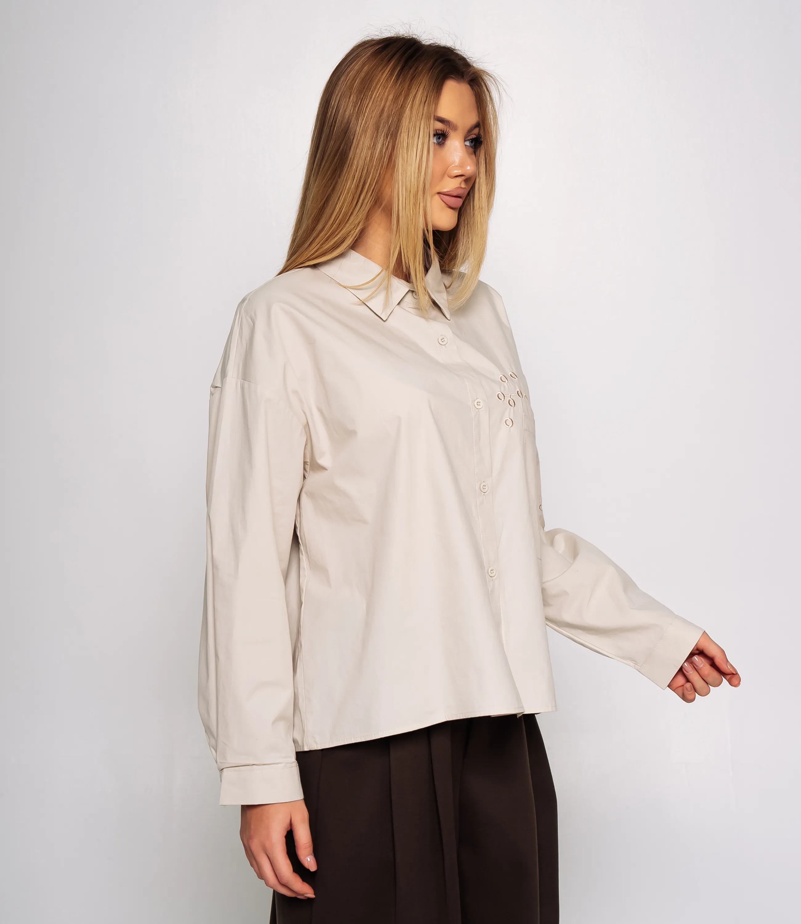 Рубашка — это часть гардероба, которая подчёркивает женственность и стиль каждой женщины. Модель свободного кроя с длинными рукавами и классическим отложным воротником отлично вписывается в повседневный и офисный ассортимент. Рубашка застёгивается на пуговицы, имеет один накладной карман на груди; мелкий декоративный принт в виде тонкой линии с небольшими элементами, проходящий через плечо и рукав, добавляет оригинальности классическому силуэту. Эту модель выбирают покупательницы, которые ценят сочетание качества и разумной цены. Производитель знает, как разрабатывать стильные и практичные решения, удобные для широкой аудитории. Для пошива использована ткань 95% хлопок, 5% спандекс. Такая комбинация обеспечивает натуральную дышащую основу и приятную фактуру за счёт хлопка, а спандекс придаёт необходимую эластичность и хорошее восстановление формы. Рубашка сохраняет аккуратный вид и форму после многократных стирок, что снижает долю возвратов и важно для розничных продаж. Цвет и фактура соответствуют фотографии на сайте. На странице представлена таблица размеров, с помощью которой вы сможете грамотно сформировать ассортимент по размерам и цветам. Производитель гарантирует аккуратную отделку и надёжную фурнитуру. Предложенные оптовые условия позволяют получить привлекательную маржинальность для магазинов. Рекомендуем включить эту рубашку в ваш ассортимент — она станет востребованным предложением для клиенток, ищущих универсальную и стильную вещь.