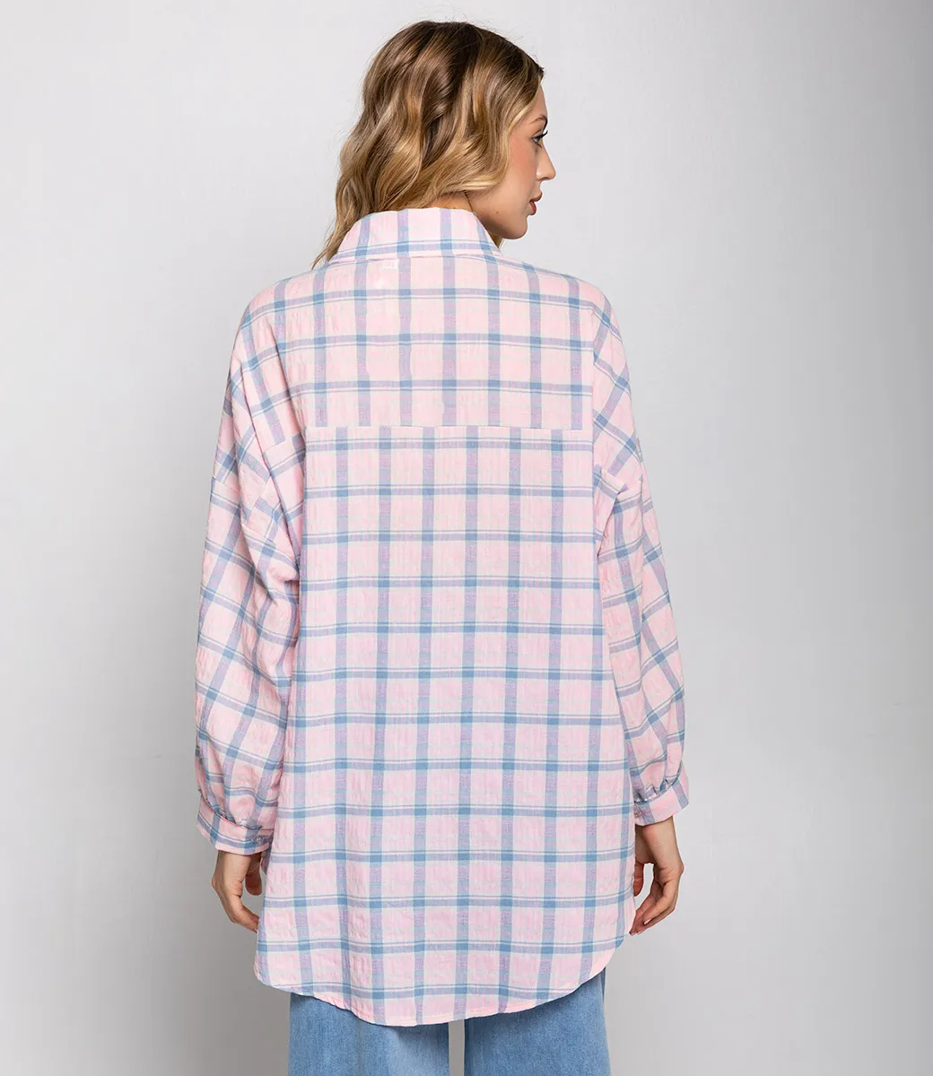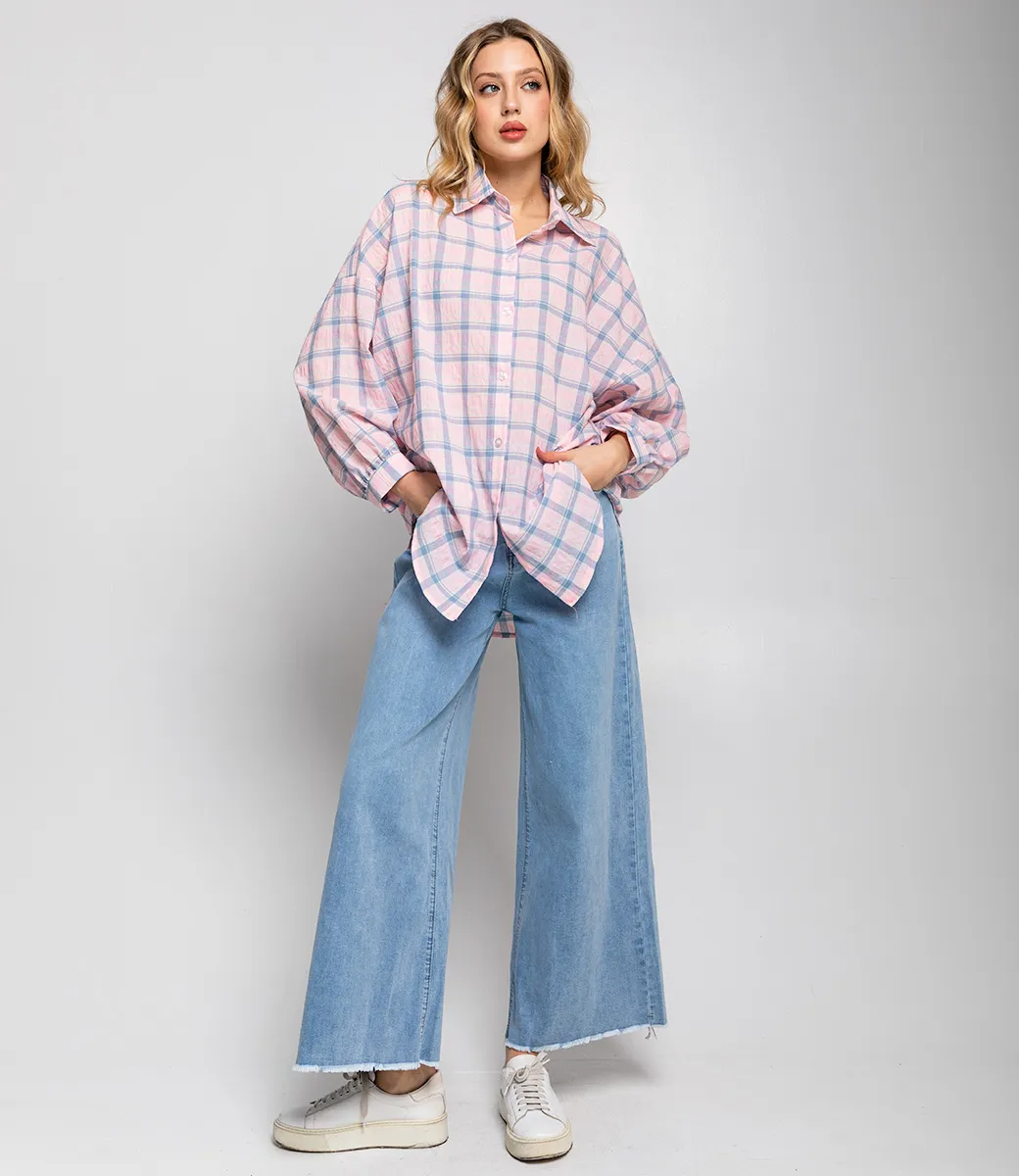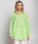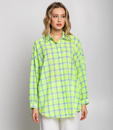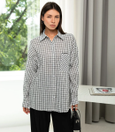 Легкая рубашка дополнит повседневный образ, делая фигуру более тонкой и женственной. Благодаря свободному крою данную модель легко сочетать с любим низом. Рост 174 см, 80-58-88.