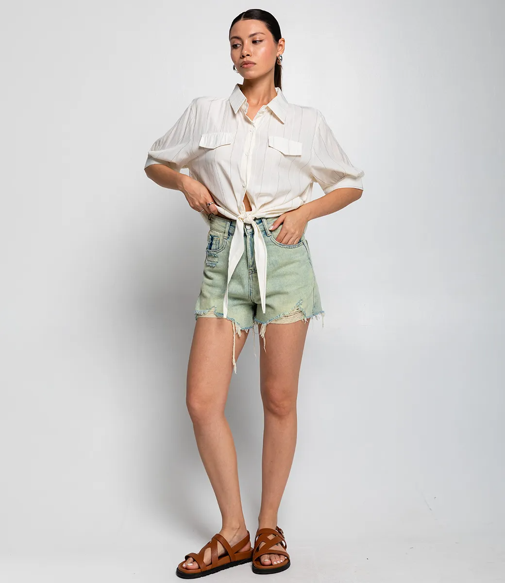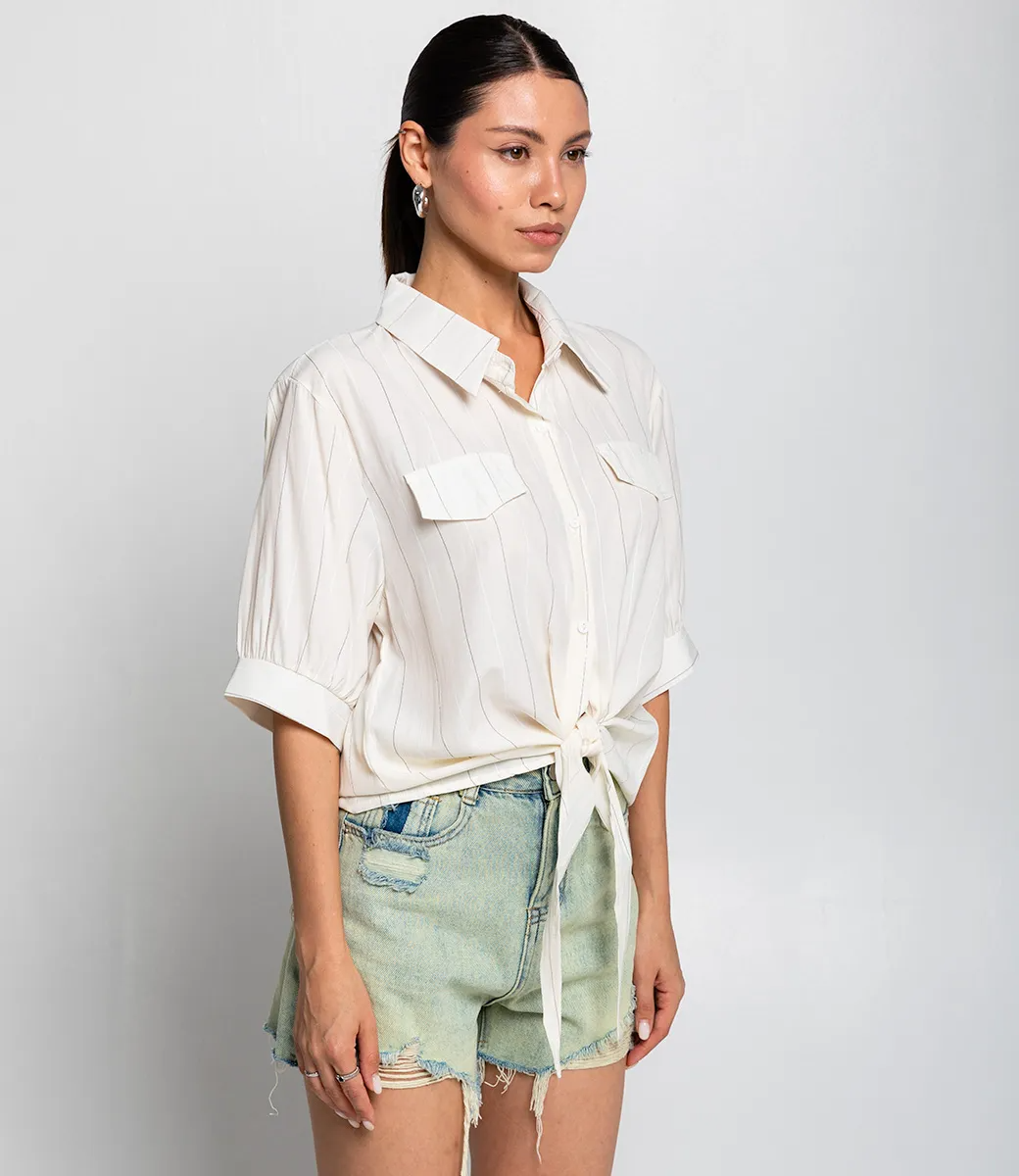 Укороченная рубашка с тонкой полоской — это тот элемент гардероба, который добавляет элегантности и стиля каждой женщине. Этот актуальный и модный предмет одежды поможет подчеркнуть уникальность и изящество фигуры, создавая непринужденный, но при этом утонченный образ. Модель выполнена из 100% полиэстера, что обеспечивает великолепную яркость цветовых оттенков и долговечность. Полиэстер — это материал, который не только легко стирается, но и прекрасно сохраняет свою форму, благодаря чему рубашка надолго останется в идеальном состоянии, даже после множества стирок. Эта рубашка идеально подходит как для офисного стиля, так и для повседневного ношения. Комбинируйте её с брюками или юбками, дополняя образ стильными аксессуарами. Тонкая полоска придаёт ей оригинальный вид и делает модель универсальной — подходящей для разных случаев. Обратите внимание на привлекательный цвет и текстуру материала. Он является насыщенным и полностью соответствует фотографиям на сайте, что позволит вашим покупателям быть уверенными в своём выборе. Мы также предусмотрели таблицу размеров, чтобы покупательницы могли легко подобрать идеальный размер для себя. Предложенная нами цена является доступной и разумной, что позволит вам выгодно предложить эту модель в вашем магазине. Подарите своим клиентам возможность быть стильными и уверенными в себе с этой укороченной рубашкой, которая добавит нотки шика и легкости в каждый образ! Рост модели 164 см., 83-61-89.
