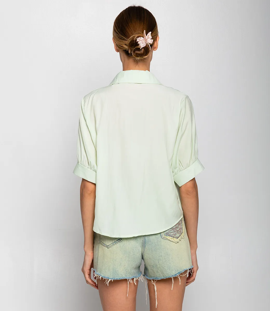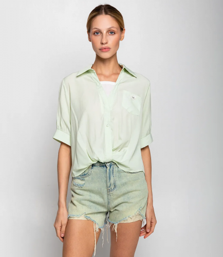 Рубашка из легкой ткани будет идеальным дополнением к летнему гардеробу любой женщины, подчеркивая её индивидуальность и стиль. Эта модель станет настоящим хитом в вашем магазине, привлекая внимание покупательниц своим современным дизайном и практичностью. Рубашка прекрасно подходит как для повседневных выходов, так и для более торжественных случаев, создавая элегантный и завершенный образ. Изготовленная на 100% из полиэстера, рубашка обеспечивает отличное сочетание легкости и прочности. Ткань дышит, сохраняет форму и легко стирается, что делает её идеальной для активного использования в летний период. Укороченные рукава средней ширины с отворотами добавляют нотку изящества, а классический воротник и застежка на пуговицы по всей длине придают изделию строгость и стиль. Спереди расположенный накладной карман и декоративный элемент являются интересными акцентами, которые привлекают взгляд. Фасон свободный с легким занижением в талии и узлом в нижней части создает непринужденность и позволяет отлично сочетать рубашку с различными низами — от шорт до юбок. Обратите внимание на цвета и текстуру, которые тщательно выбраны и полностью соответствуют фотографиям в каталоге. Для удобства ваших клиентов мы предоставили таблицу размеров на сайте, чтобы каждая покупательница могла легко найти идеальный вариант для себя. Предложенная нами цена делает эту рубашку доступной для оптовых закупок, что предоставляет отличную возможность для пополнения вашего ассортимента. Не упустите шанс предложить своим клиенткам стильное и универсальное решение для летнего сезона!