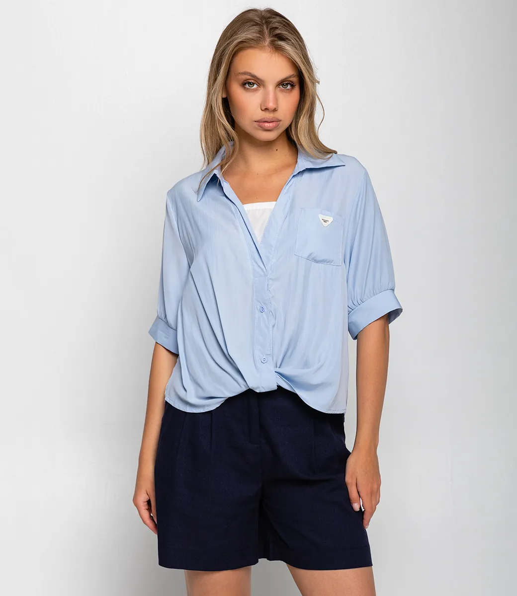 Рубашка из легкой ткани будет идеальным дополнением к летнему гардеробу любой женщины, подчеркивая её индивидуальность и стиль. Эта модель станет настоящим хитом в вашем магазине, привлекая внимание покупательниц своим современным дизайном и практичностью. Рубашка прекрасно подходит как для повседневных выходов, так и для более торжественных случаев, создавая элегантный и завершенный образ. Изготовленная на 100% из полиэстера, рубашка обеспечивает отличное сочетание легкости и прочности. Ткань дышит, сохраняет форму и легко стирается, что делает её идеальной для активного использования в летний период. Укороченные рукава средней ширины с отворотами добавляют нотку изящества, а классический воротник и застежка на пуговицы по всей длине придают изделию строгость и стиль. Спереди расположенный накладной карман и декоративный элемент являются интересными акцентами, которые привлекают взгляд. Фасон свободный с легким занижением в талии и узлом в нижней части создает непринужденность и позволяет отлично сочетать рубашку с различными низами — от шорт до юбок. Обратите внимание на цвета и текстуру, которые тщательно выбраны и полностью соответствуют фотографиям в каталоге. Для удобства ваших клиентов мы предоставили таблицу размеров на сайте, чтобы каждая покупательница могла легко найти идеальный вариант для себя. Предложенная нами цена делает эту рубашку доступной для оптовых закупок, что предоставляет отличную возможность для пополнения вашего ассортимента. Не упустите шанс предложить своим клиенткам стильное и универсальное решение для летнего сезона! Рост модели 168 см., 89-63-90