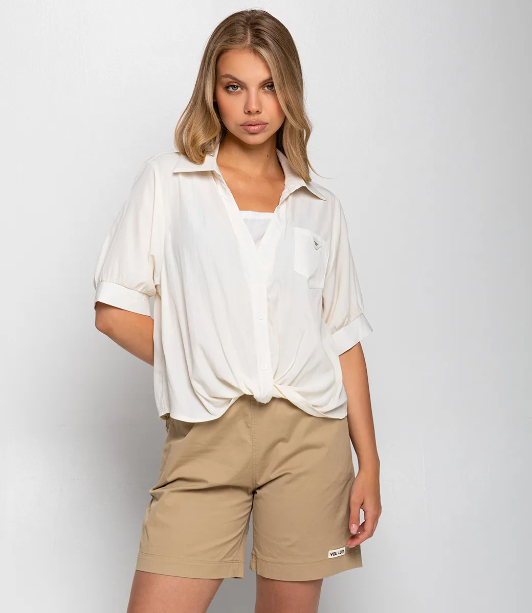Рубашка из легкой ткани будет идеальным дополнением к летнему гардеробу любой женщины, подчеркивая её индивидуальность и стиль. Эта модель станет настоящим хитом в вашем магазине, привлекая внимание покупательниц своим современным дизайном и практичностью. Рубашка прекрасно подходит как для повседневных выходов, так и для более торжественных случаев, создавая элегантный и завершенный образ. Изготовленная на 100% из полиэстера, рубашка обеспечивает отличное сочетание легкости и прочности. Ткань дышит, сохраняет форму и легко стирается, что делает её идеальной для активного использования в летний период. Укороченные рукава средней ширины с отворотами добавляют нотку изящества, а классический воротник и застежка на пуговицы по всей длине придают изделию строгость и стиль. Спереди расположенный накладной карман и декоративный элемент являются интересными акцентами, которые привлекают взгляд. Фасон свободный с легким занижением в талии и узлом в нижней части создает непринужденность и позволяет отлично сочетать рубашку с различными низами — от шорт до юбок. Обратите внимание на цвета и текстуру, которые тщательно выбраны и полностью соответствуют фотографиям в каталоге. Для удобства ваших клиентов мы предоставили таблицу размеров на сайте, чтобы каждая покупательница могла легко найти идеальный вариант для себя. Предложенная нами цена делает эту рубашку доступной для оптовых закупок, что предоставляет отличную возможность для пополнения вашего ассортимента. Не упустите шанс предложить своим клиенткам стильное и универсальное решение для летнего сезона! Рост модели 168 см., 89-63-90