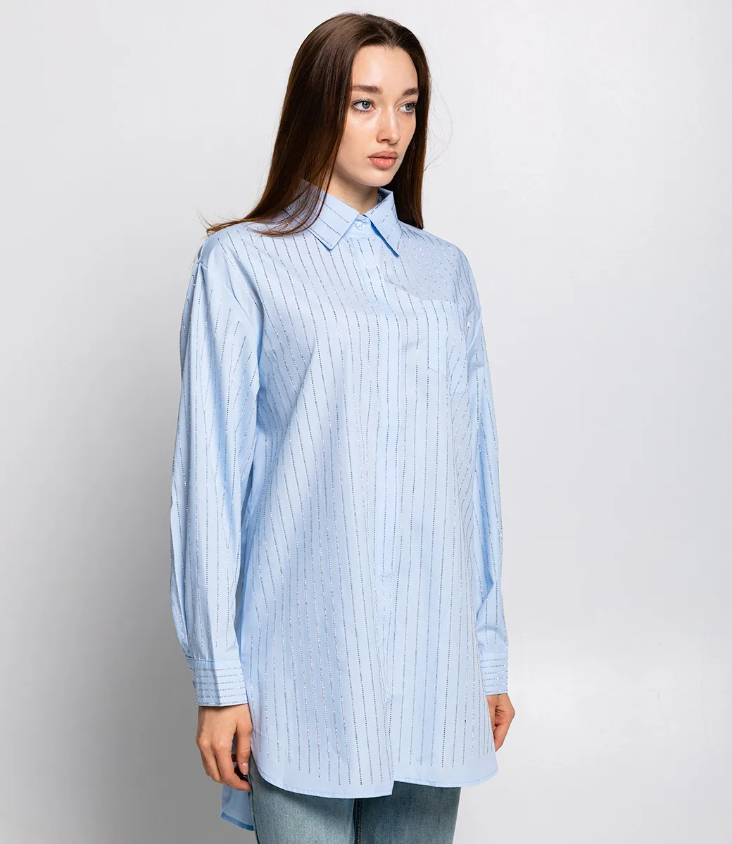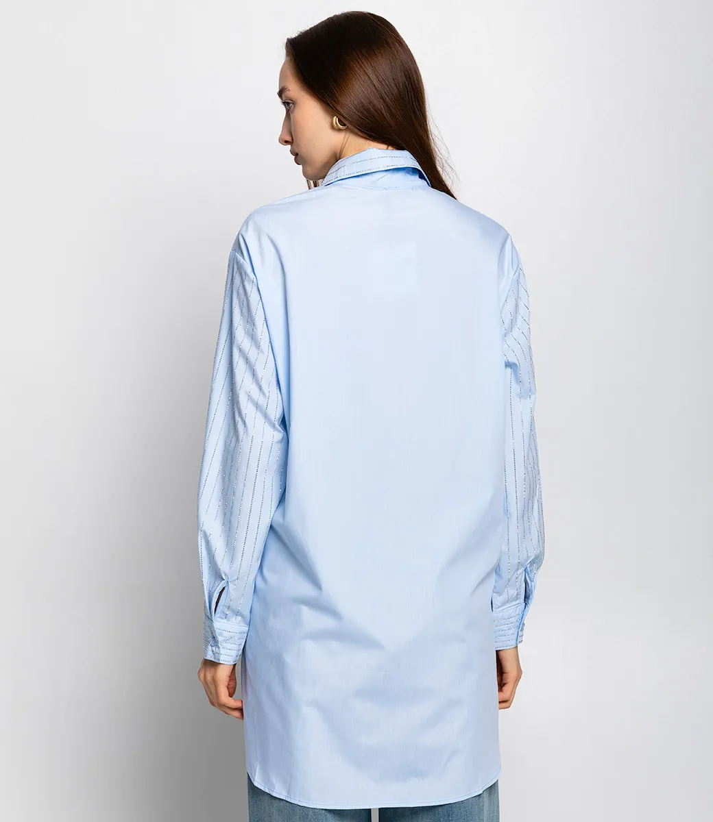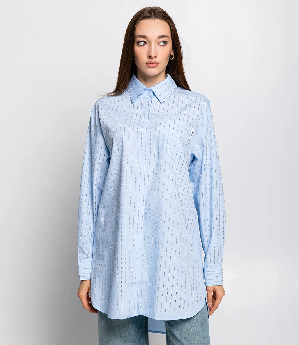 Рубашка - это часть гардероба, которая подчеркивает уникальность каждой женщины. Данная модель подойдет для любого сезона. Ее предпочитают покупательницы, которые ценят сочетание эксклюзивности и цены. Крой с тонкой полоской из страз подчеркивает изящность фигуры. Производитель умеет находить неординарные и стильные решения. Для пошива выбрана ткань из 100% полиэстера, которая выделяется безупречным качеством. Даже после многократных стирок рубашка не утратит первоначальной привлекательности. Вы обязательно будете носить ее с радостью. Обратите внимание на глубокий цвет. Он соответствует фотографии на сайте. Чтобы вы не сомневались в размере, мы предоставили на странице таблицу. Воспользовавшись ею, вы сможете самостоятельно сделать мерки и удостовериться. Установленная нами цена является невысокой. Не откажите себе в удовольствии быть элегантной! Рост модели 168 см., 85-63-92.
